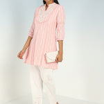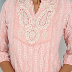 Pink Raschel Net Embroidered Kurti for Women