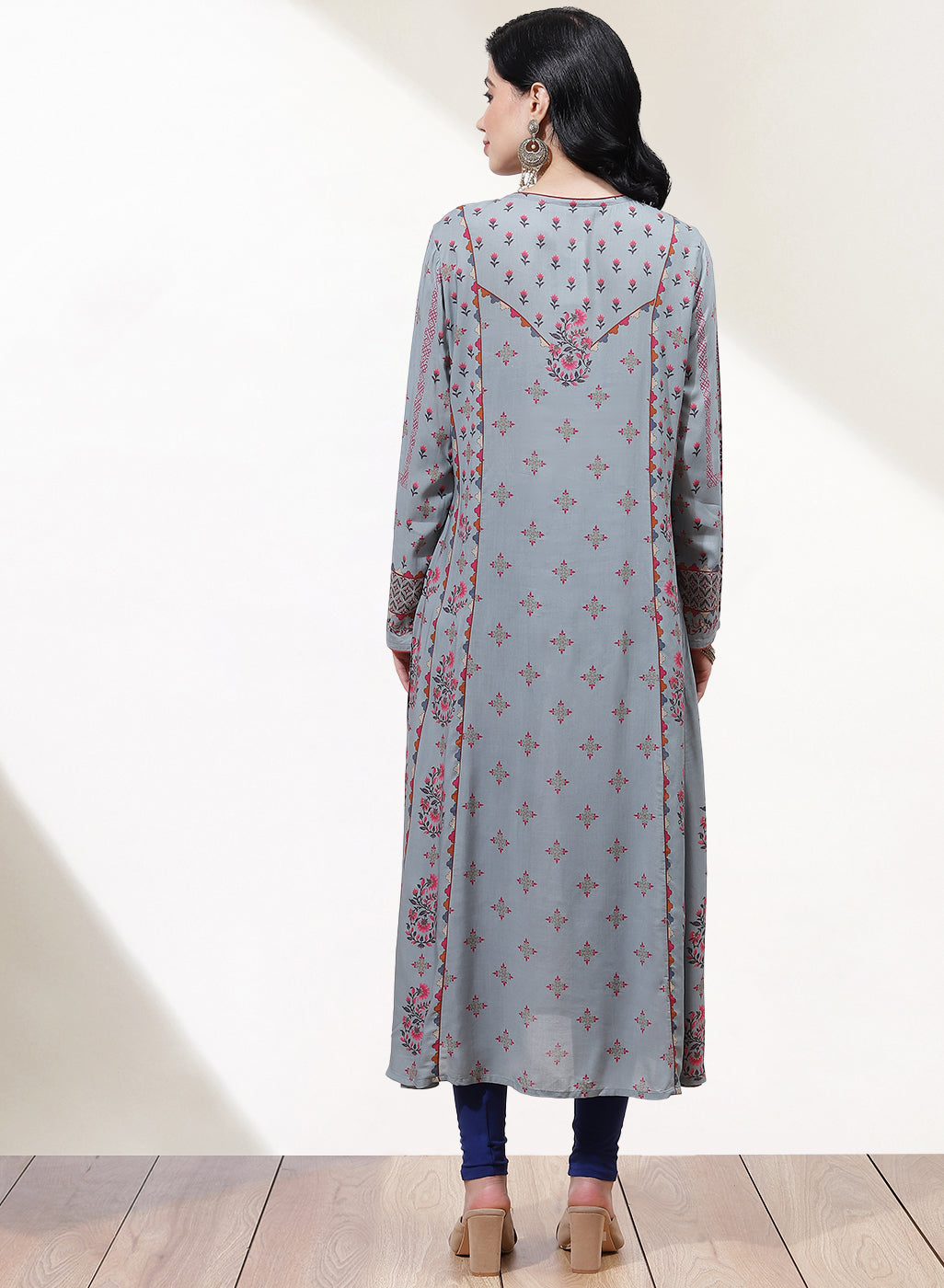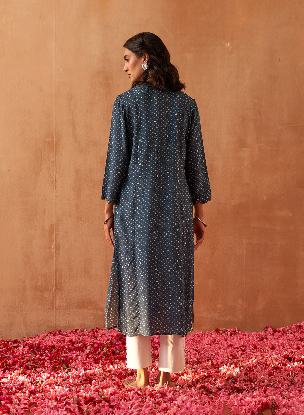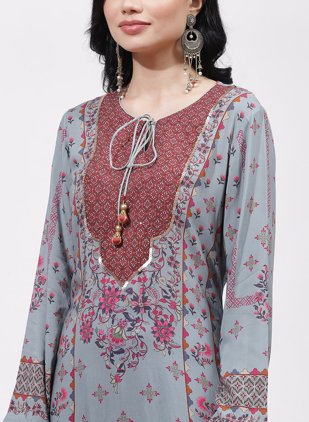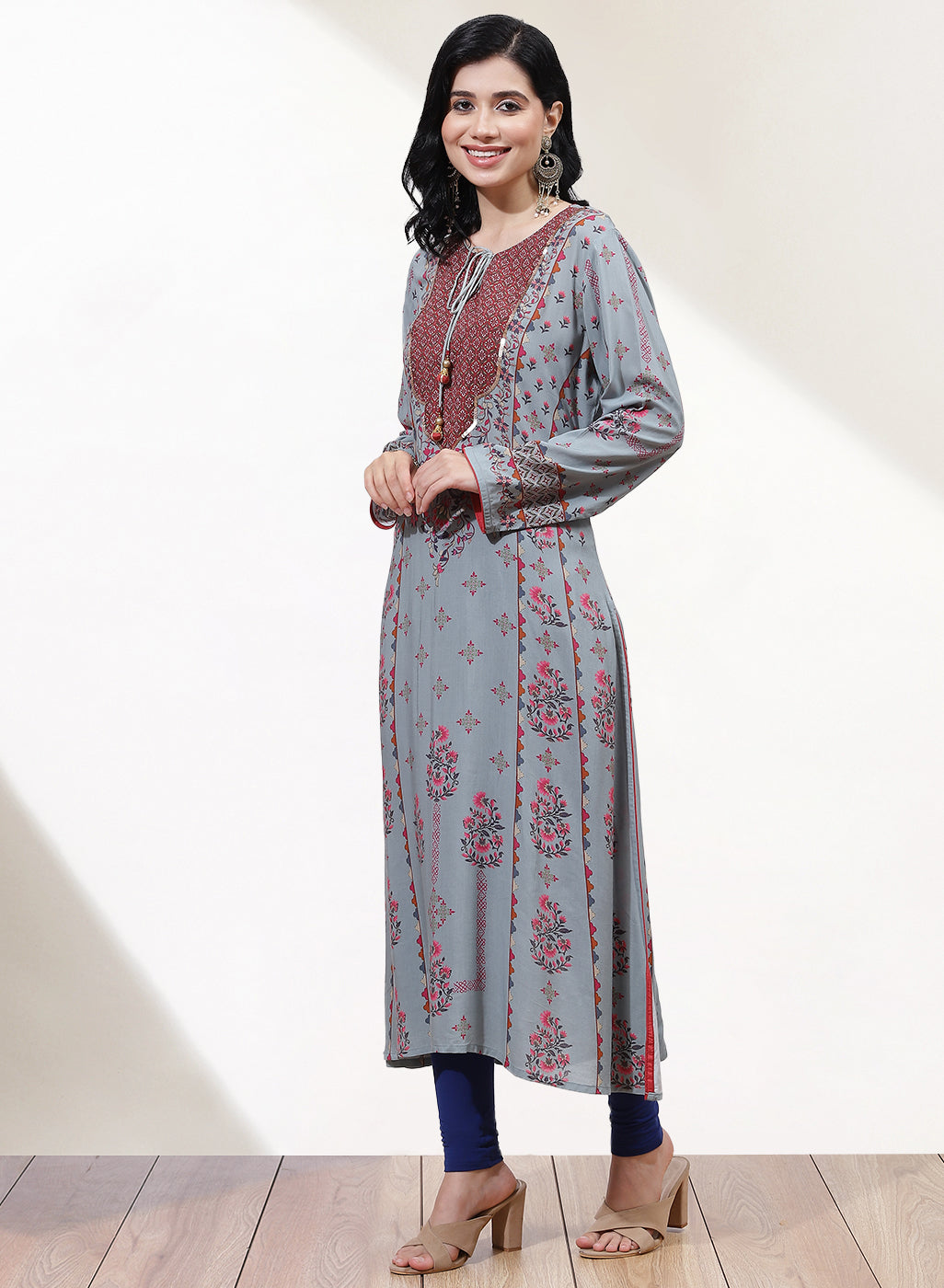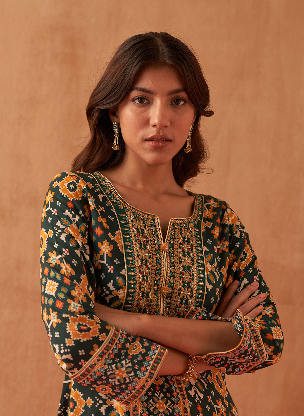 Teal Floral Print Dhaage Collection Kurta With Embroidery