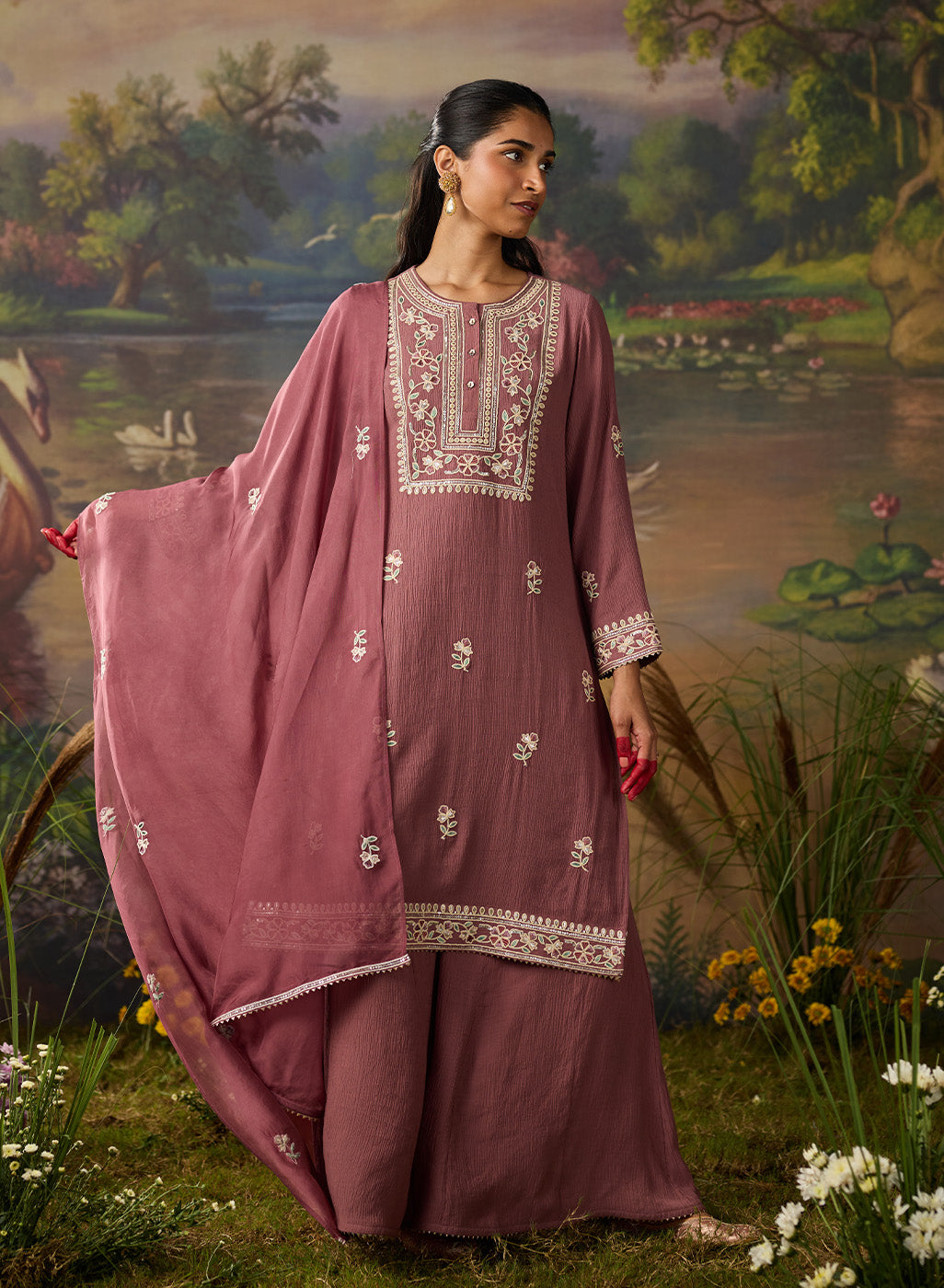 Sky Blue Embroidered Viscose Satin Kurta Sets