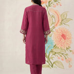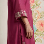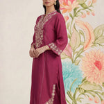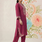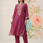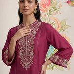Saroja Dark Fuchsia Embroidered A-line Kurta Set