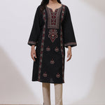 Charcoal Black Embroidered Nargis Kurta Set with Black Palazzo