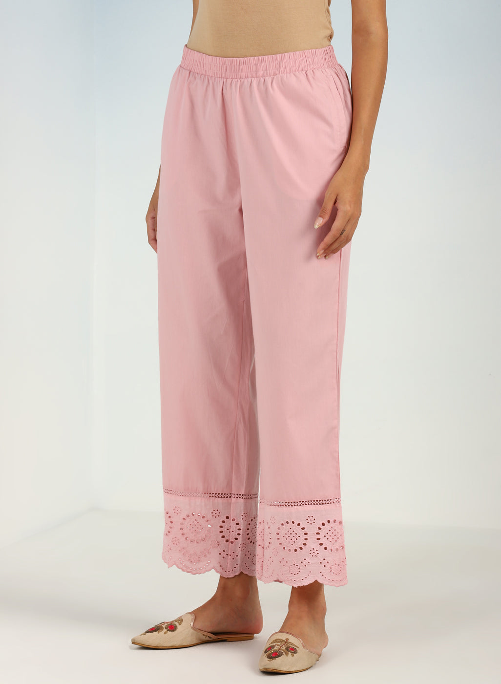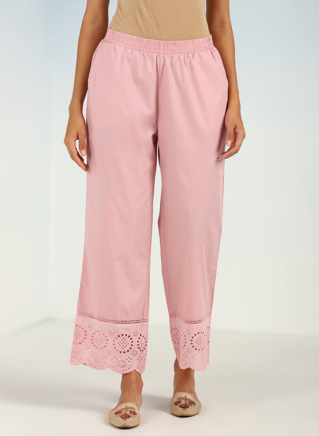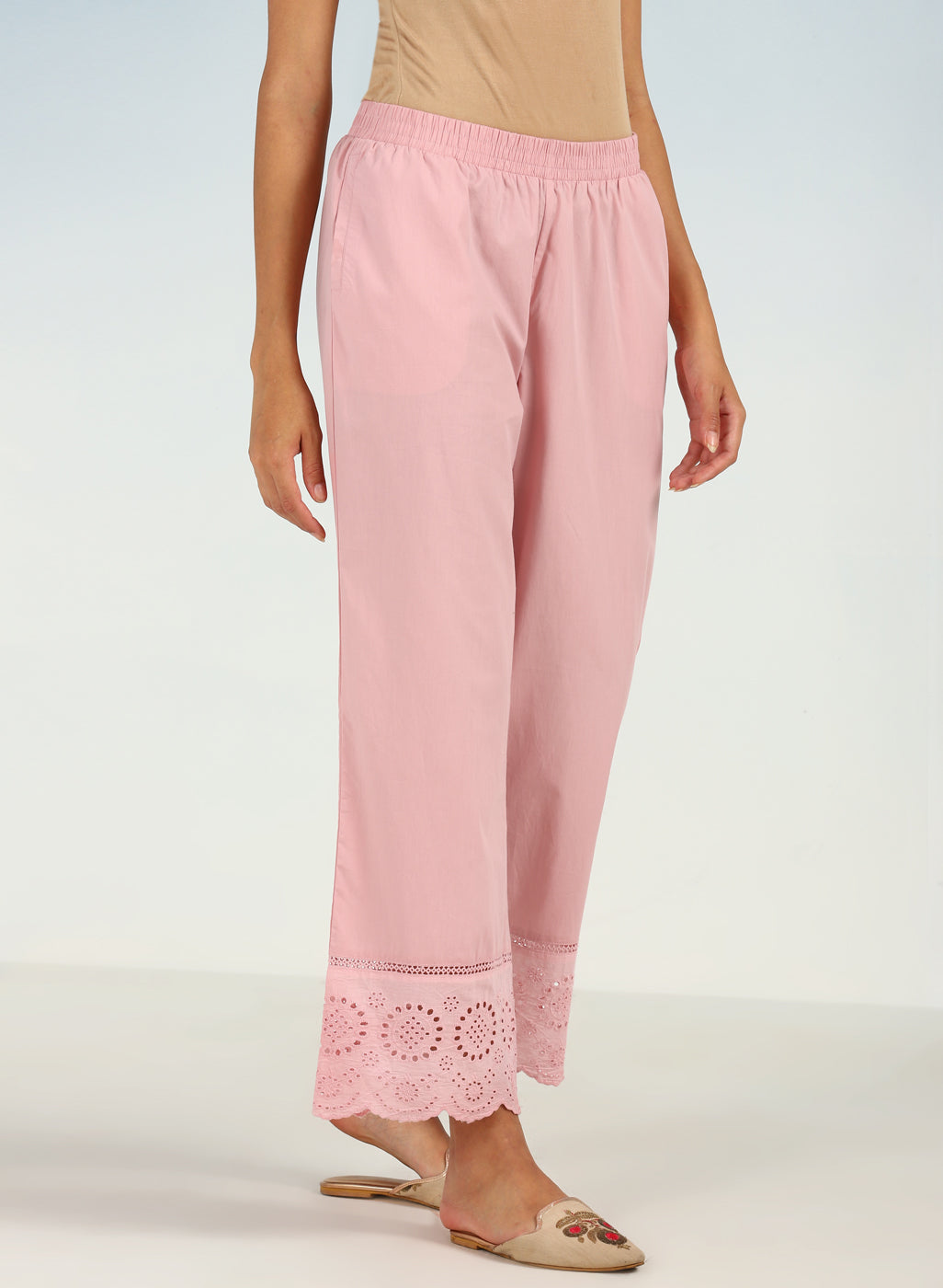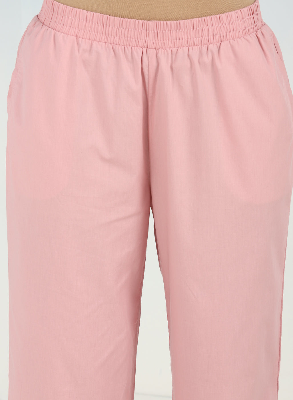 - These Pink ankle-length straight-fit pants effortlessly combine modern style with intricate detailing.