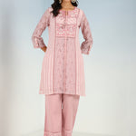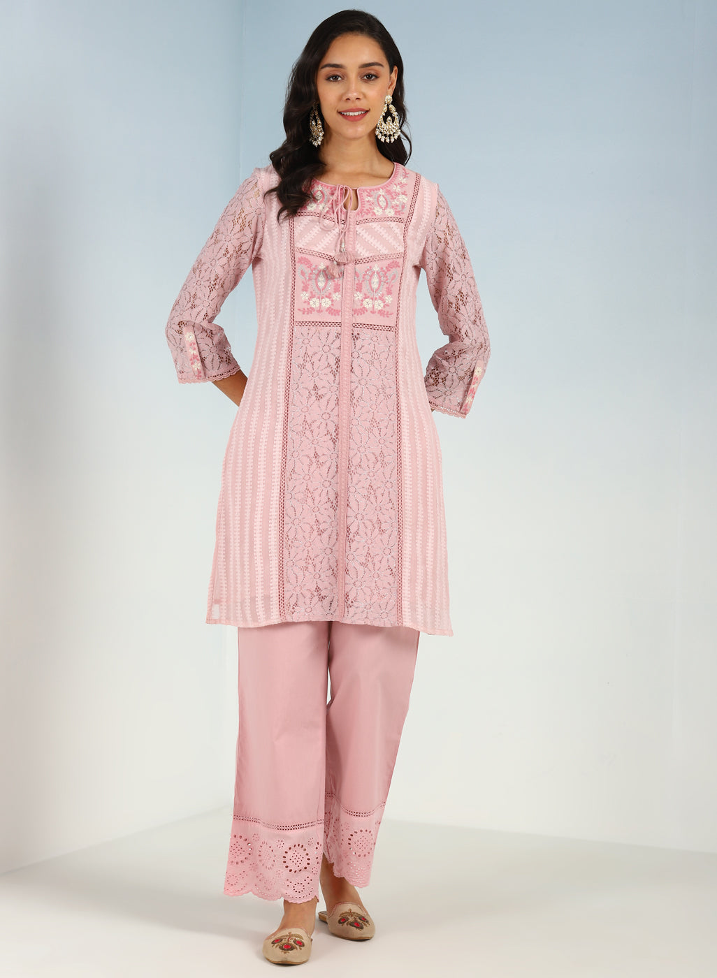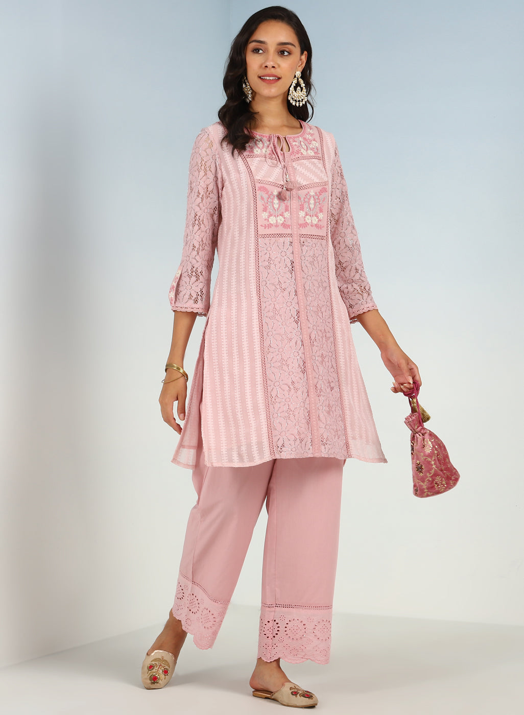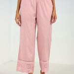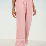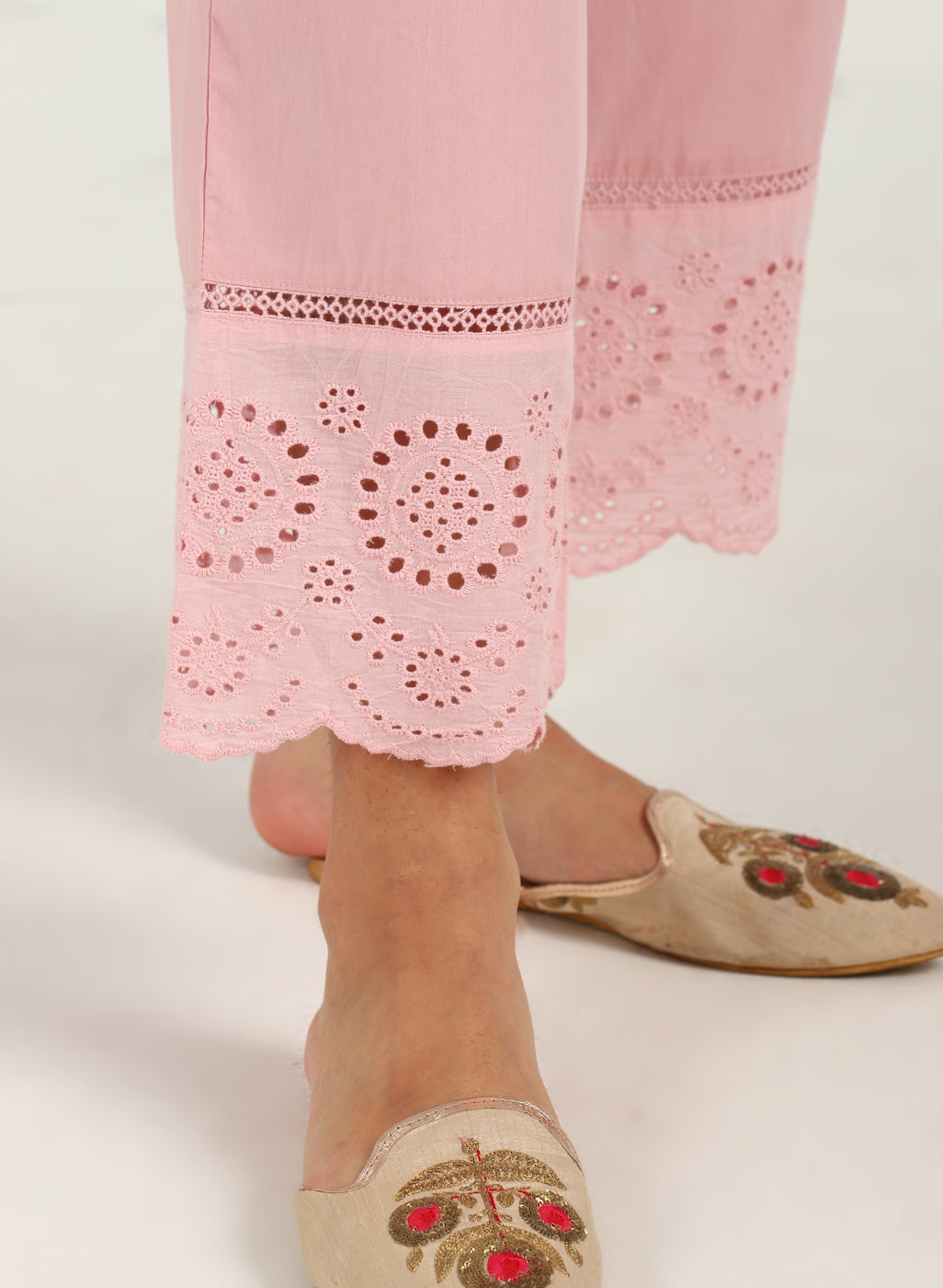 - These Pink ankle-length straight-fit pants effortlessly combine modern style with intricate detailing.