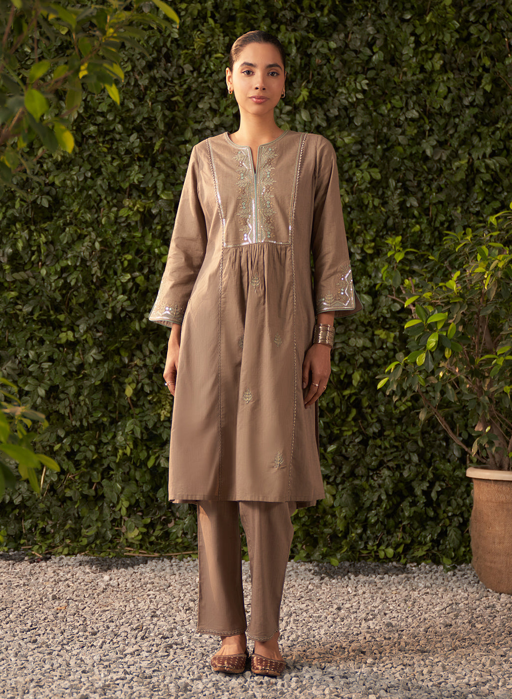Solid Yellow Textured Kurta Set with Schiffli & Lace Work