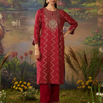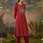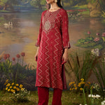 Amaltas Red Printed Viscose Embellished Straight Long Kurta Set