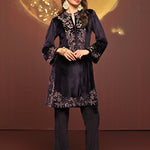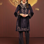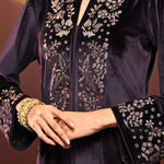 Mallika Deep Purple Embroidered Velvet Co-ord Set for Women