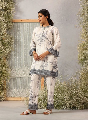 Shabnam Pewter Grey Printed Remi Linen Co-ord Set for Women