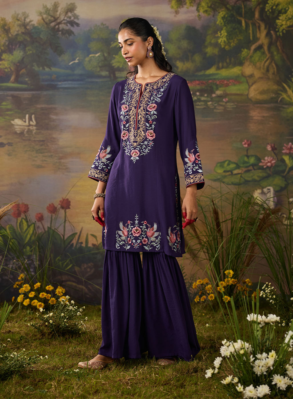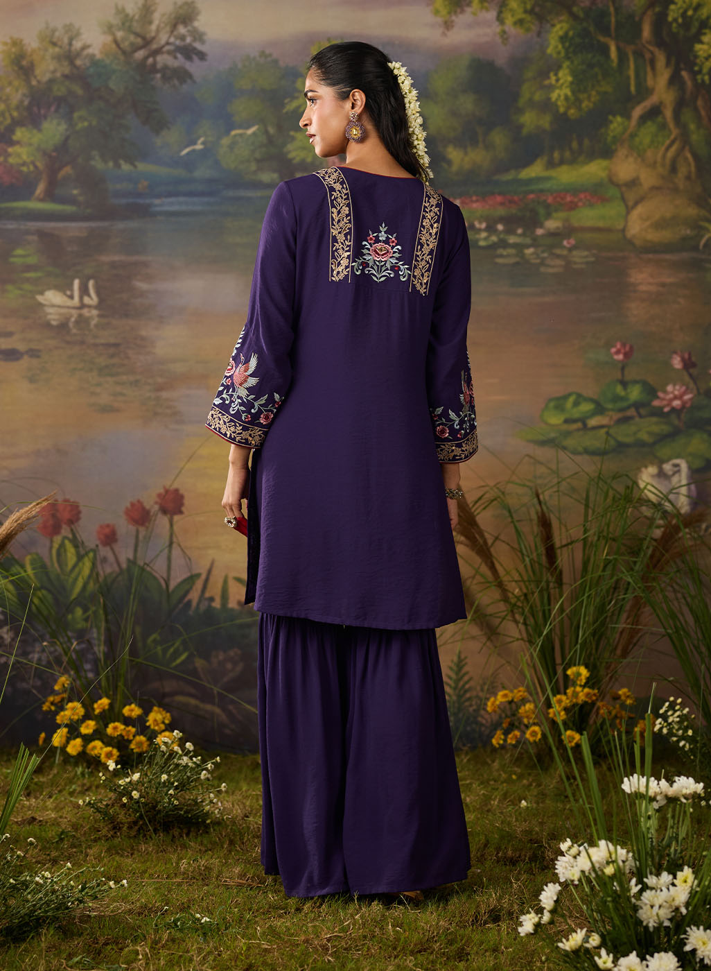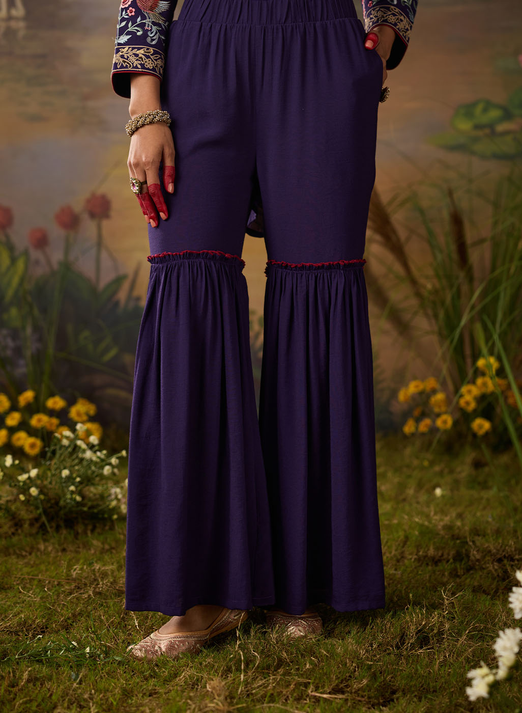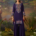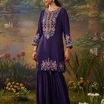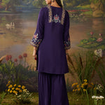 Siyahi Dark Purple Emboidered Co-ord Set with Shararas