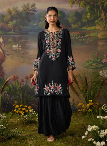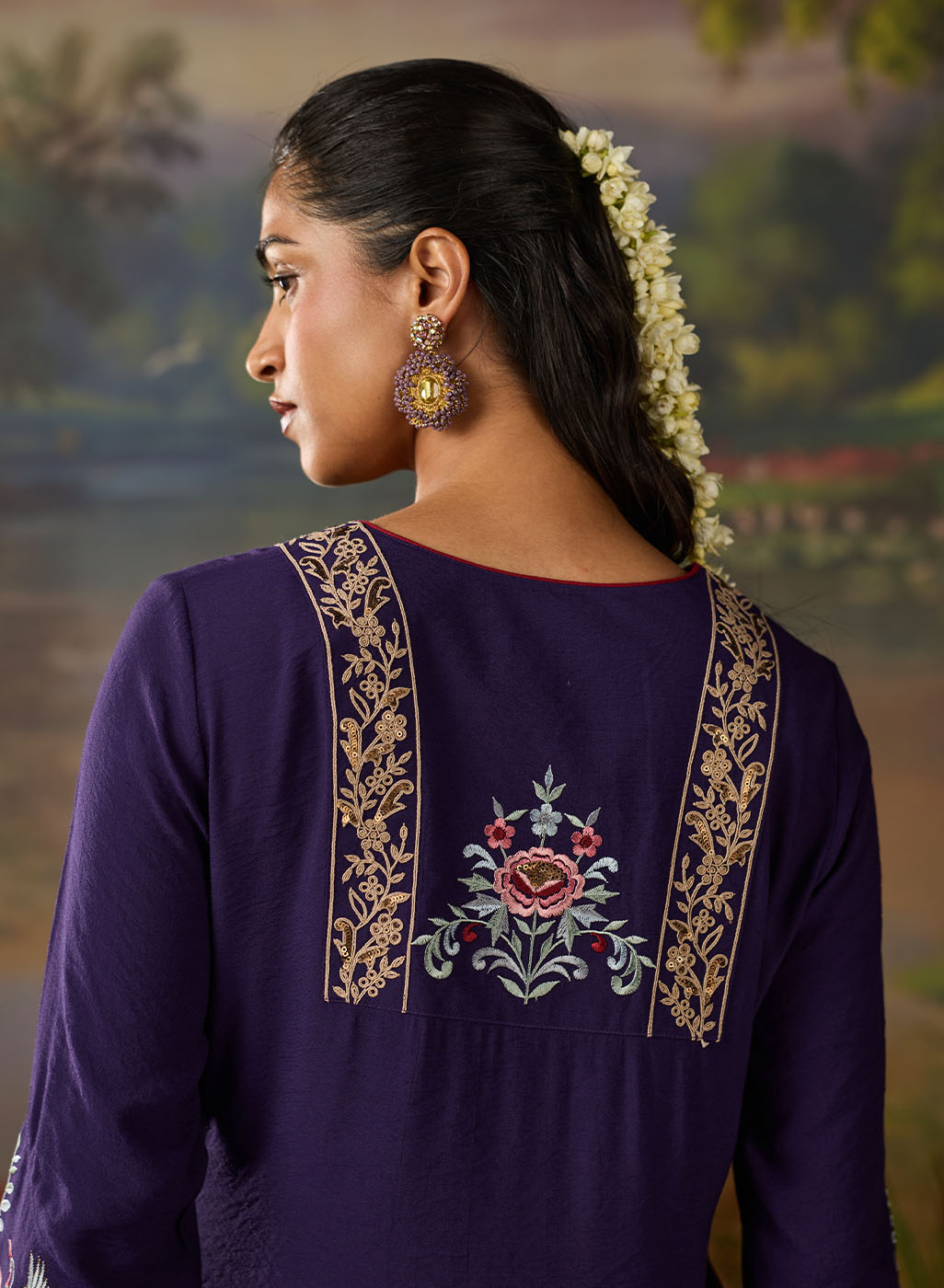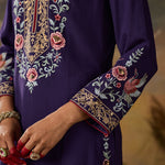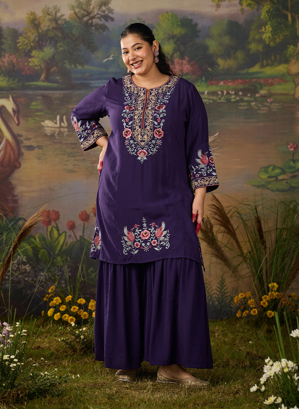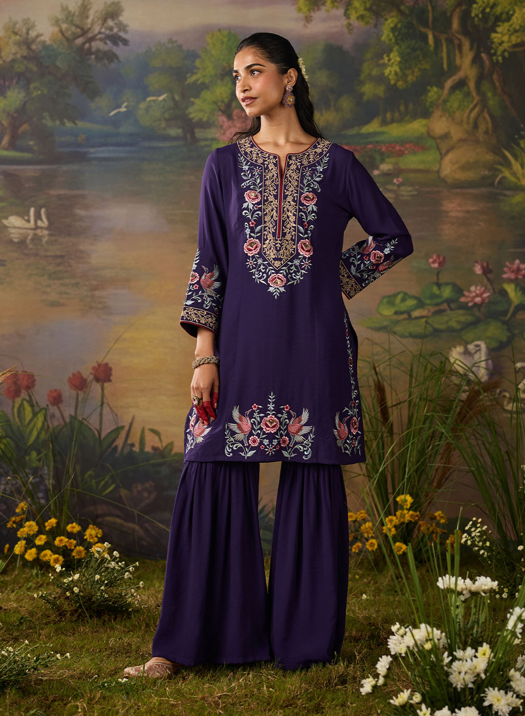 Siyahi Dark Purple Emboidered Co-ord Set with Shararas