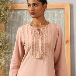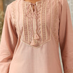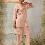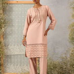 Solid Peach Textured Kurta Set with Schiffli & Lace Work