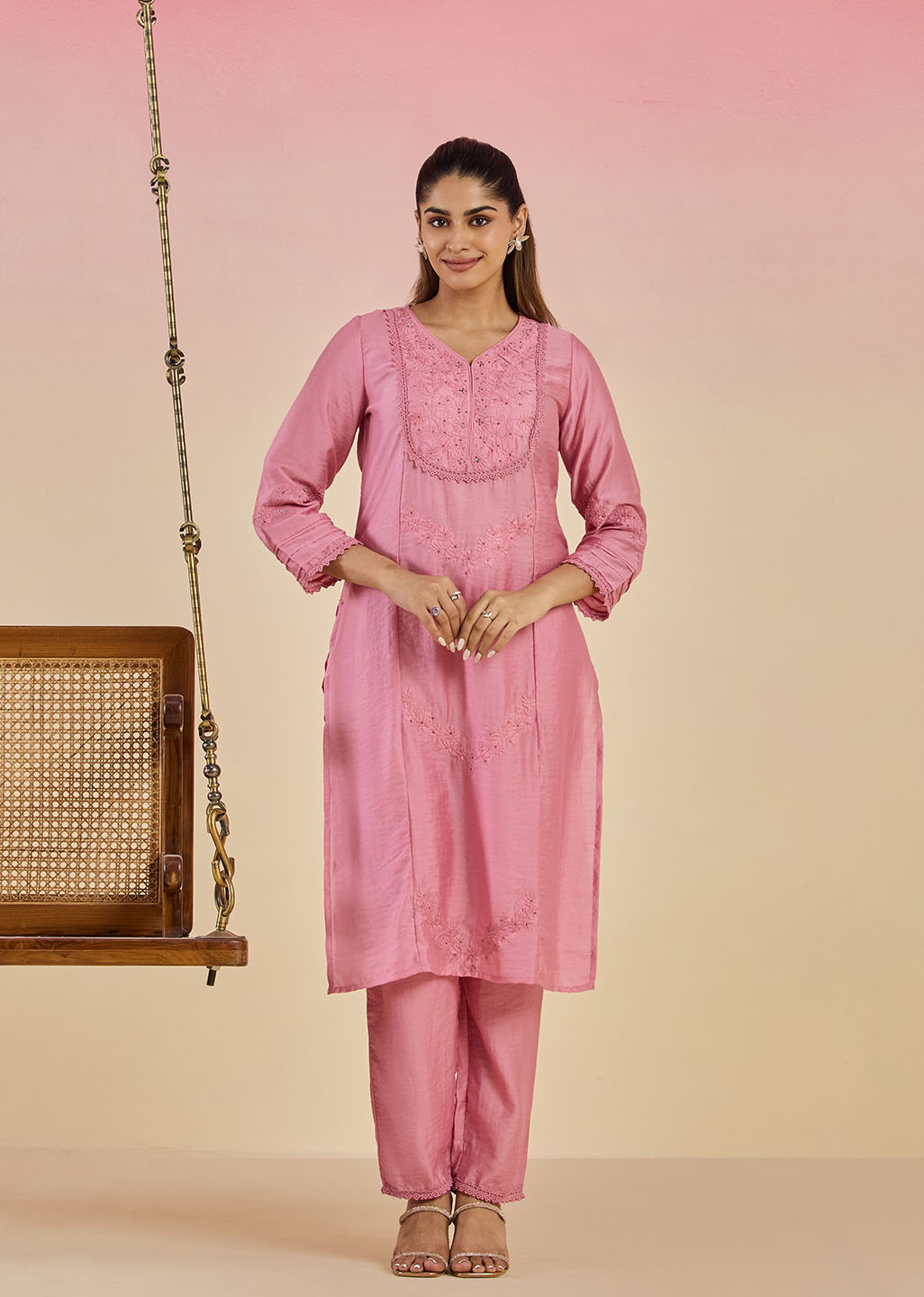 Suhasi Pink Embroidered Viscose Linen Co-ord Set