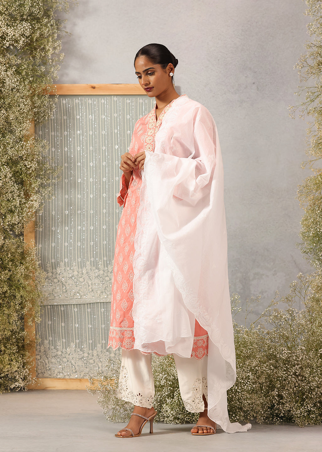 Pakiza Pearl White Embroidered Cotton Dupatta for Women