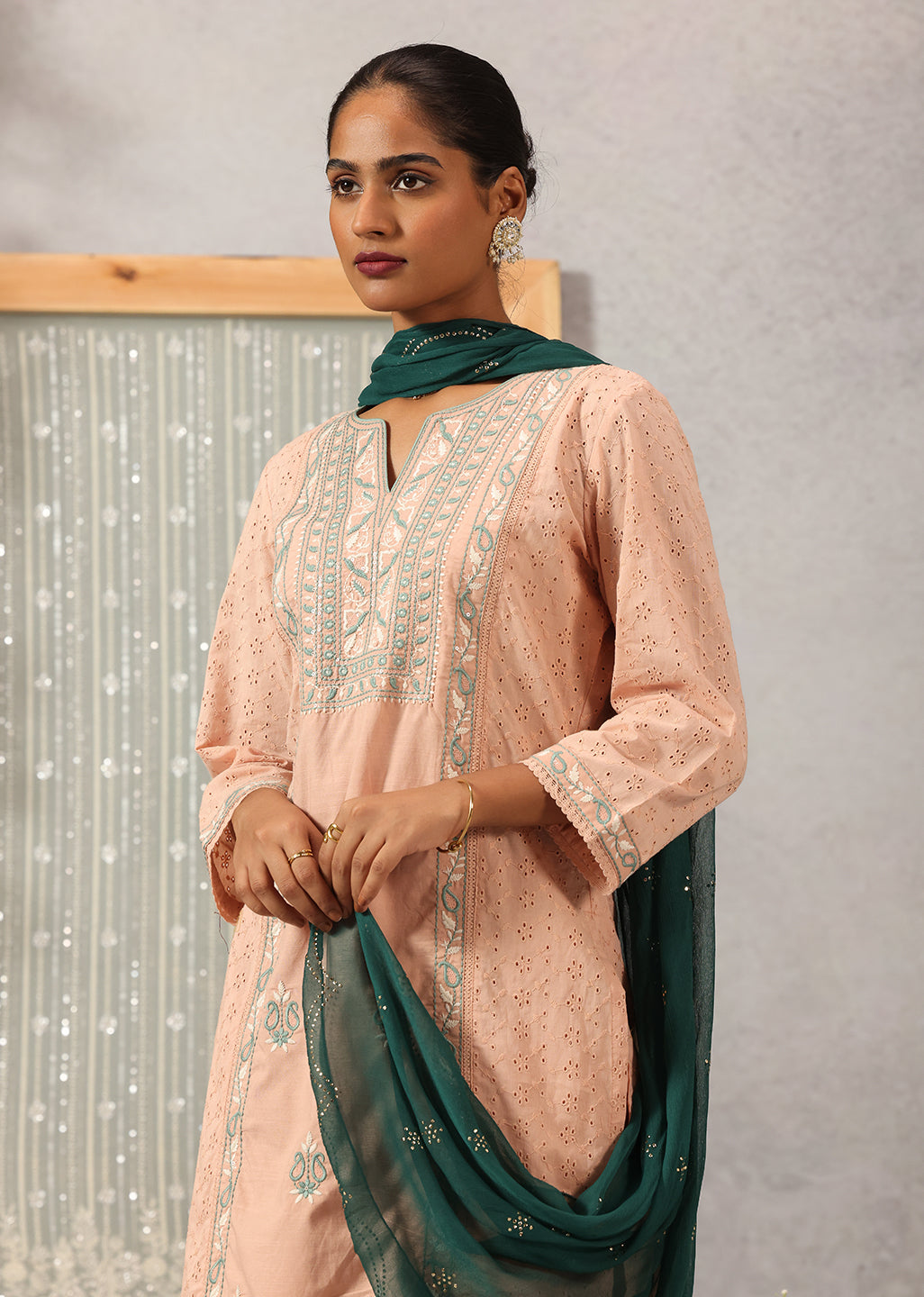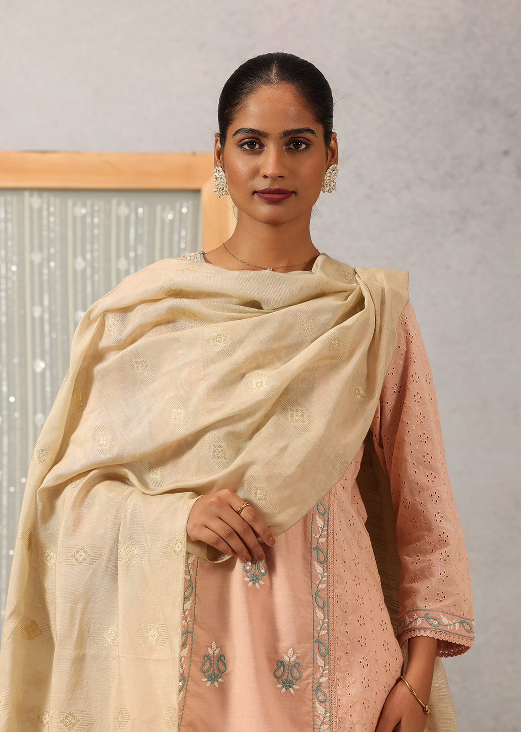 Maya Beige Embroidred Chanderi Dupatta for Women