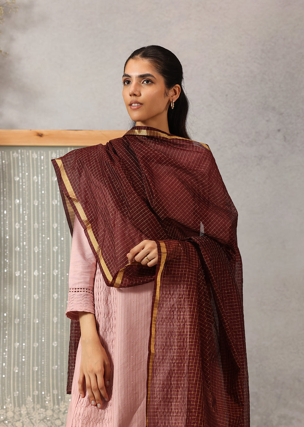 Gaatha Burgundy Woven Chanderi Dupatta for Women
