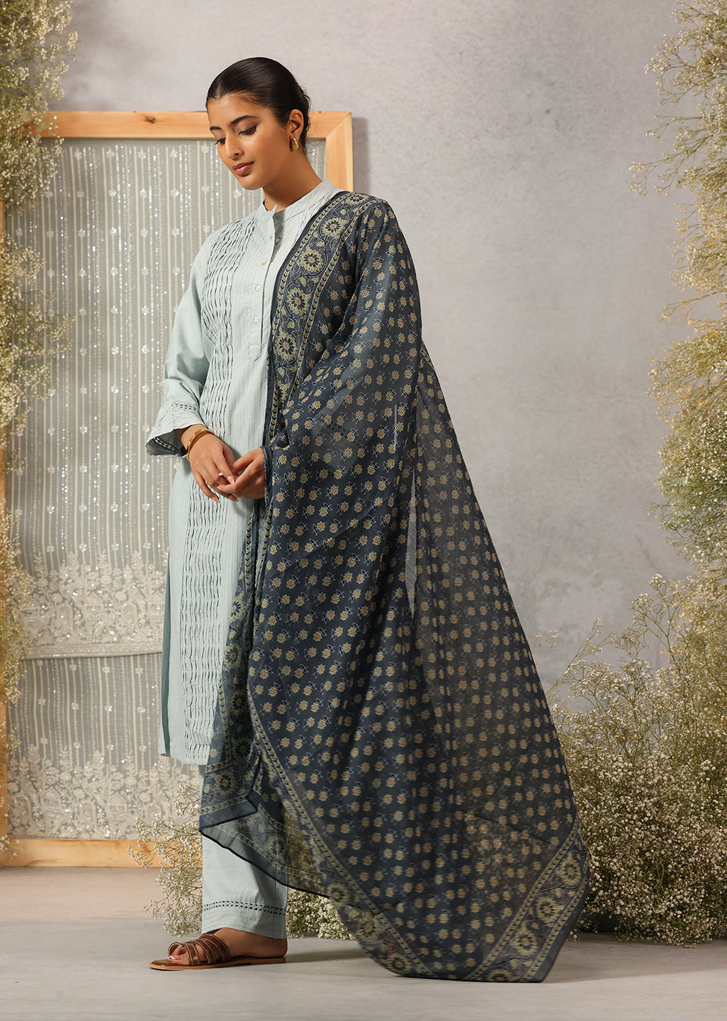 Indira Blue Heritage Embroidered Georgette Co-ord Set