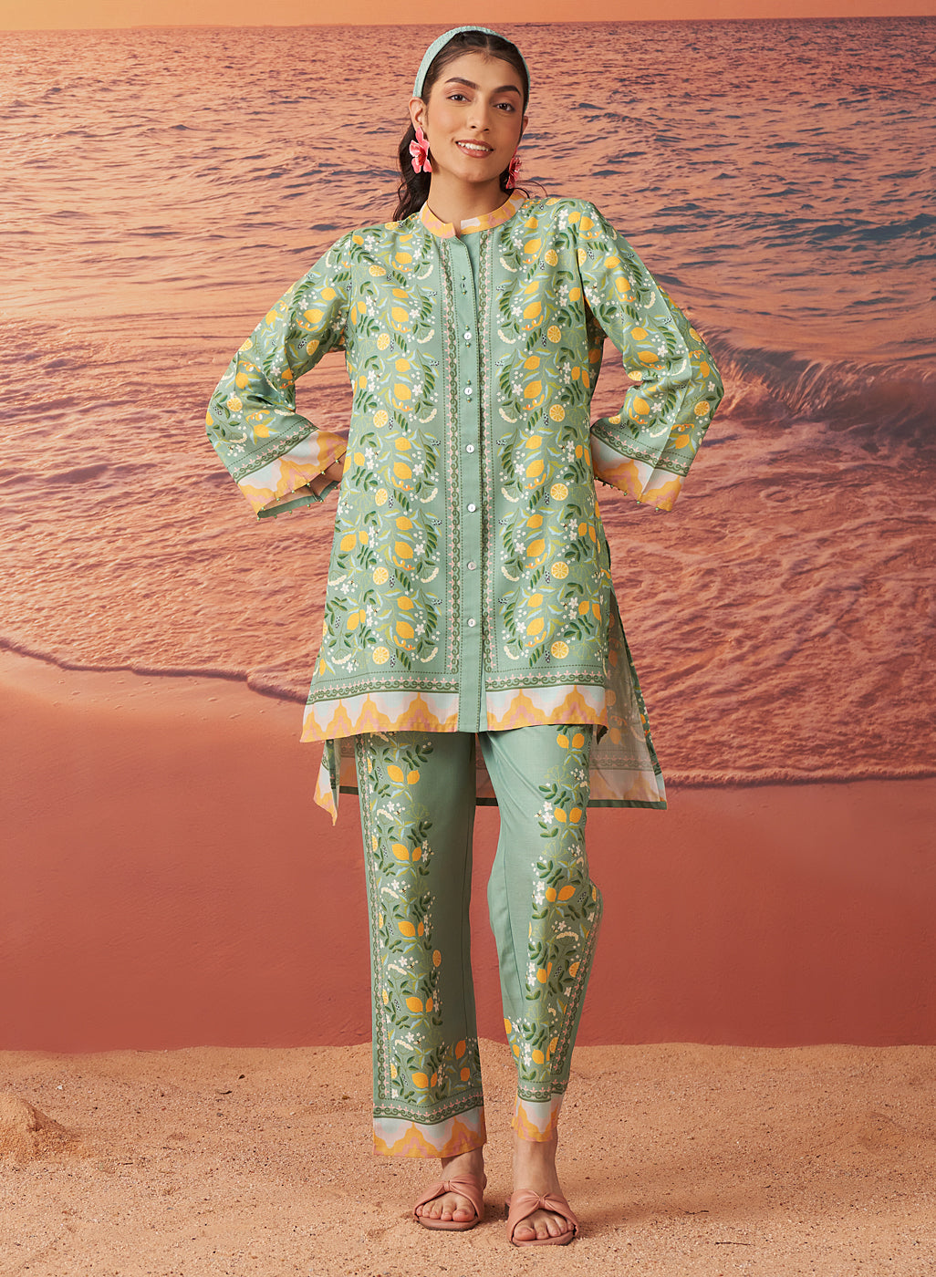 Miraya Leaf Green Printed Crepe Co-ord Set for Women