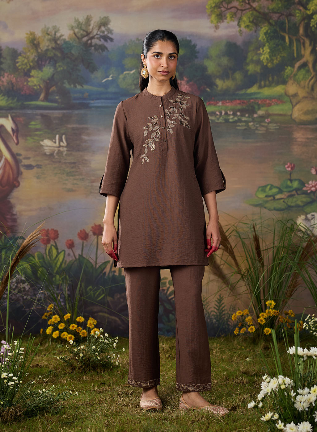 Viora Brown Metallic Dori Embroidered Co-ord Set