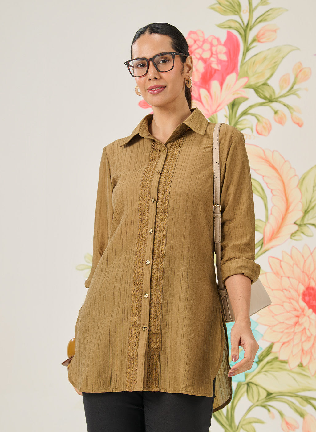 Olive Monochrome Embroidered Nylon Viscose Shirt