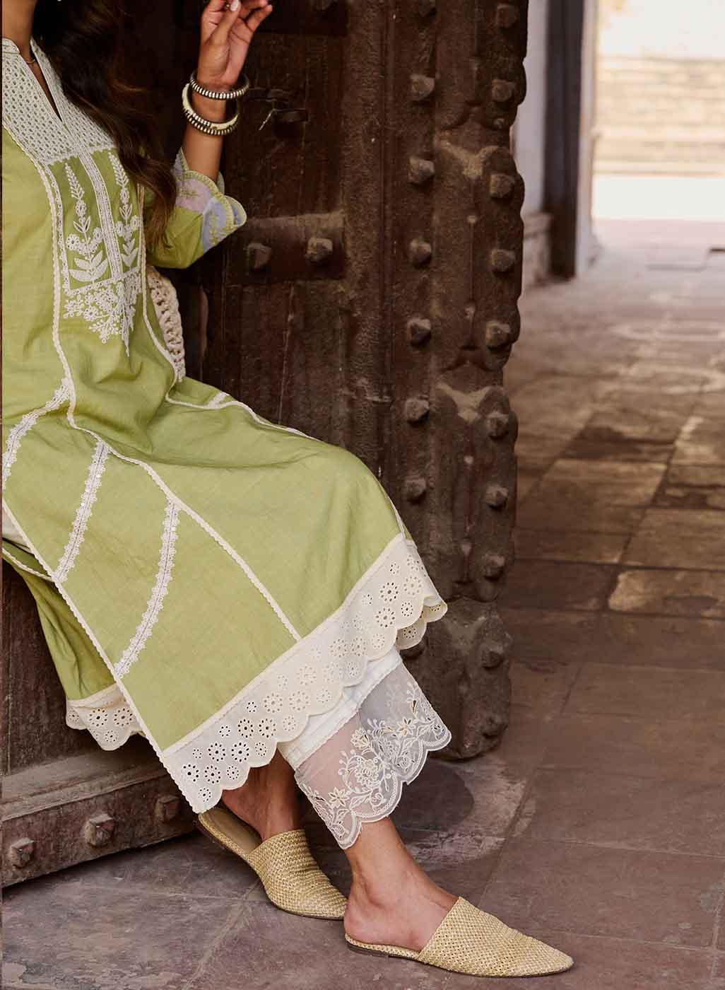Ivory Kurta for Women with Threadwork and Lace Detailing