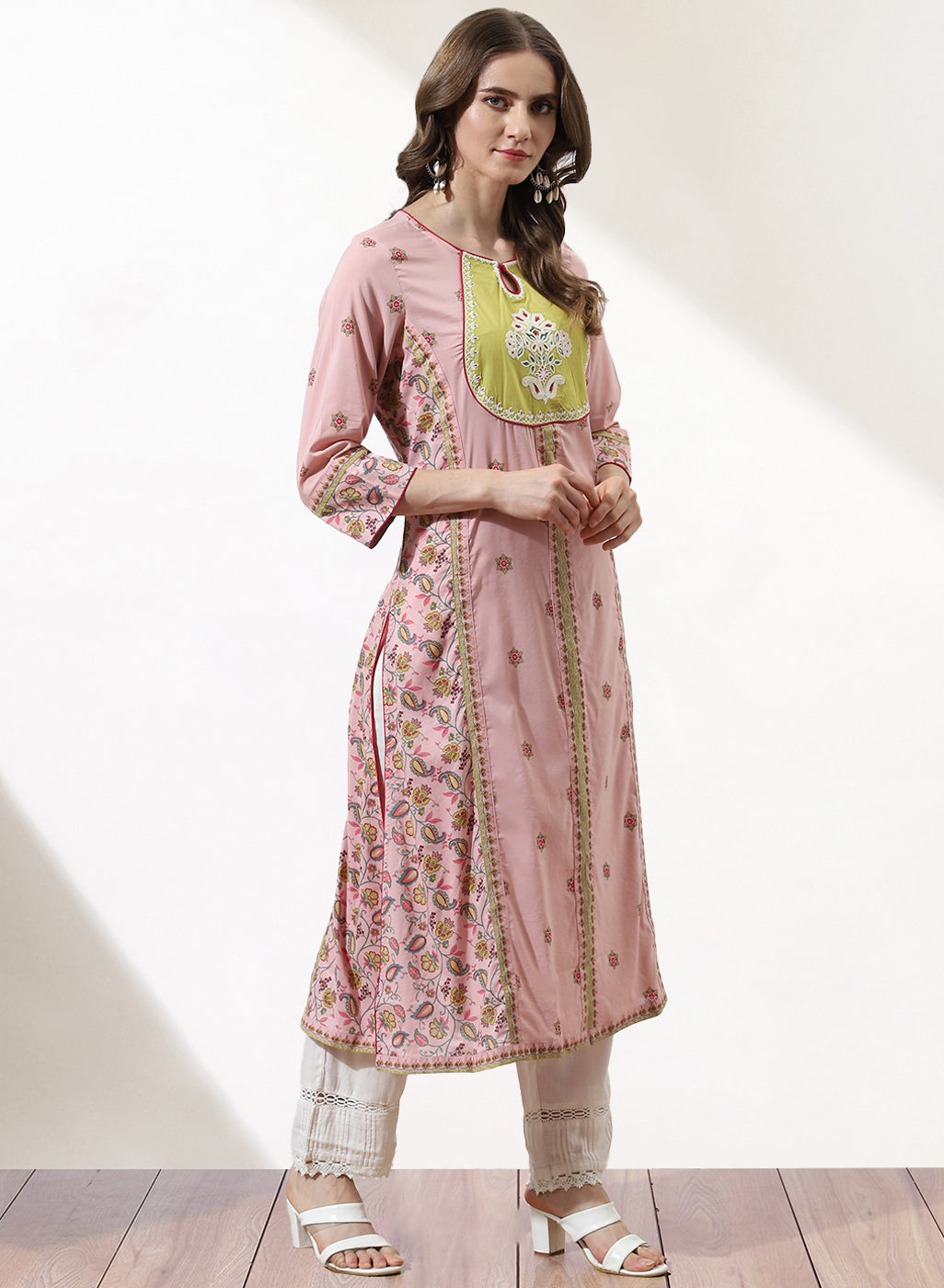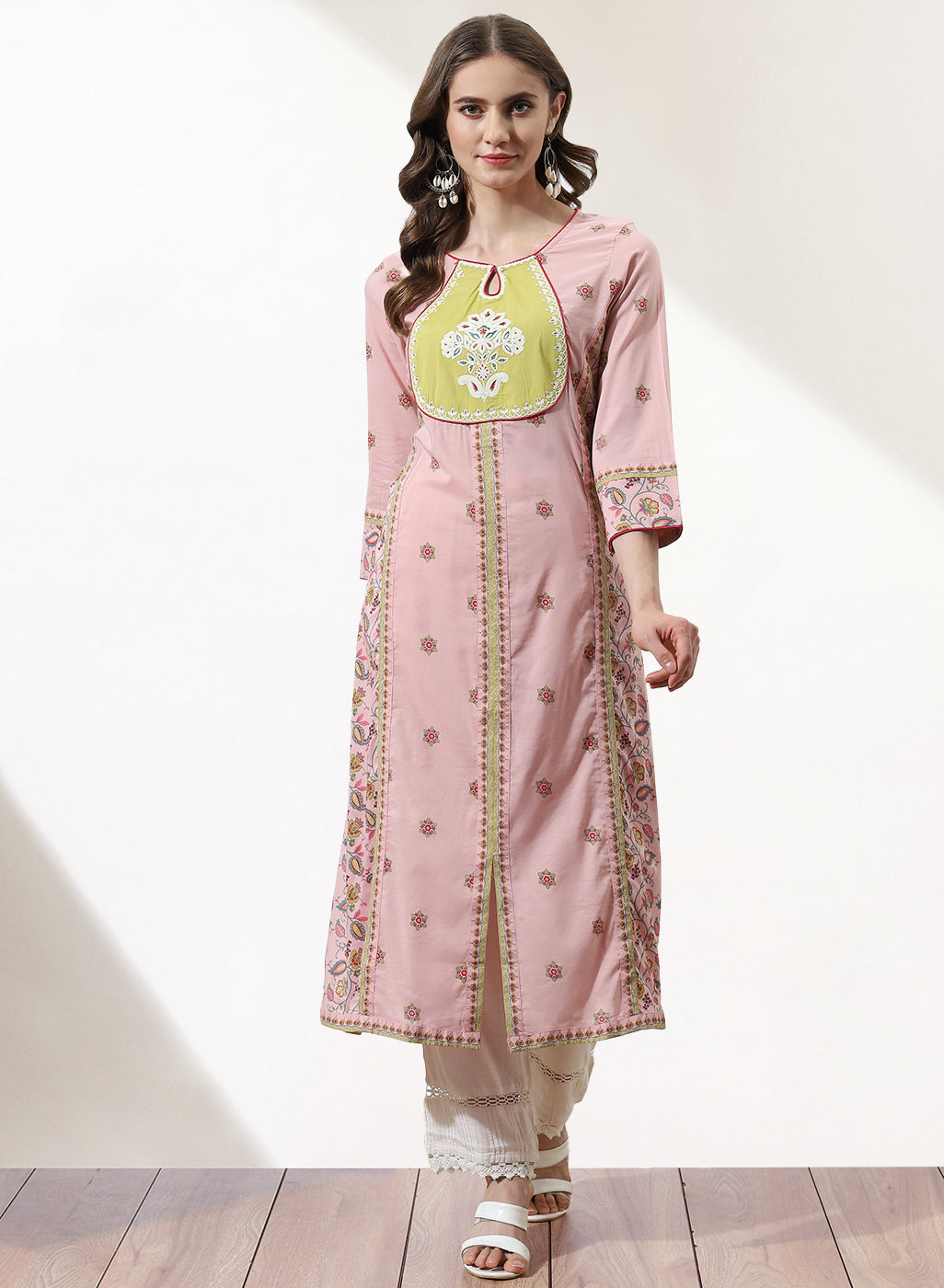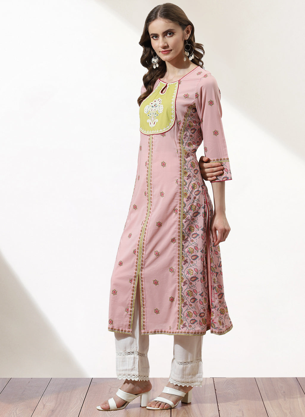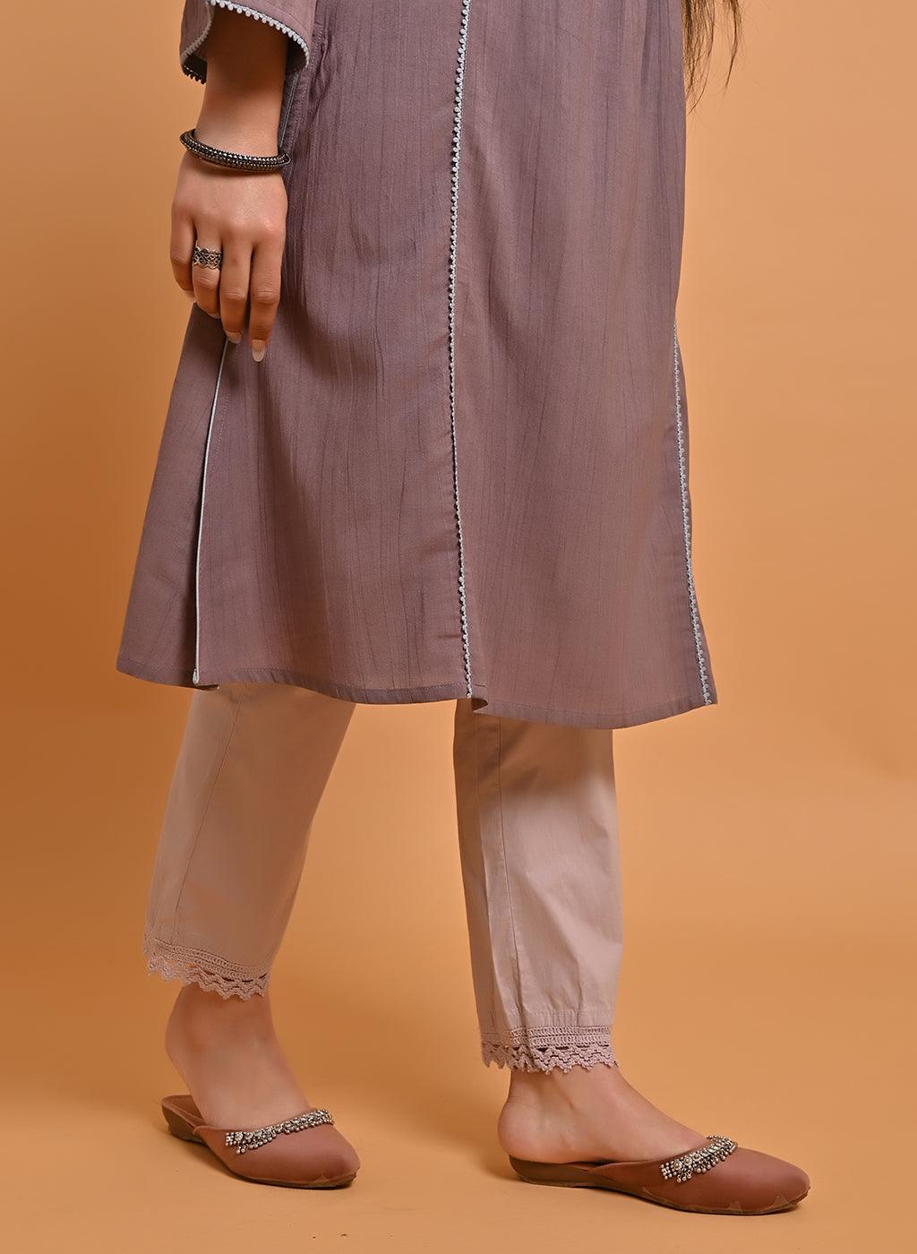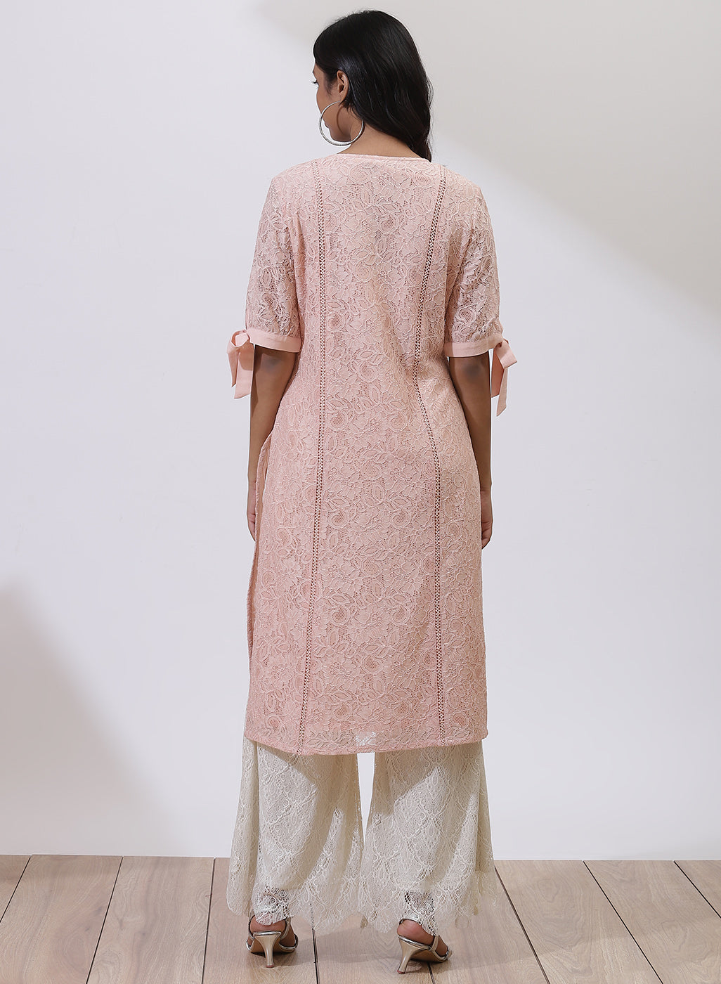 Pink Kurta for Women with Threadwork and Lace Detailing