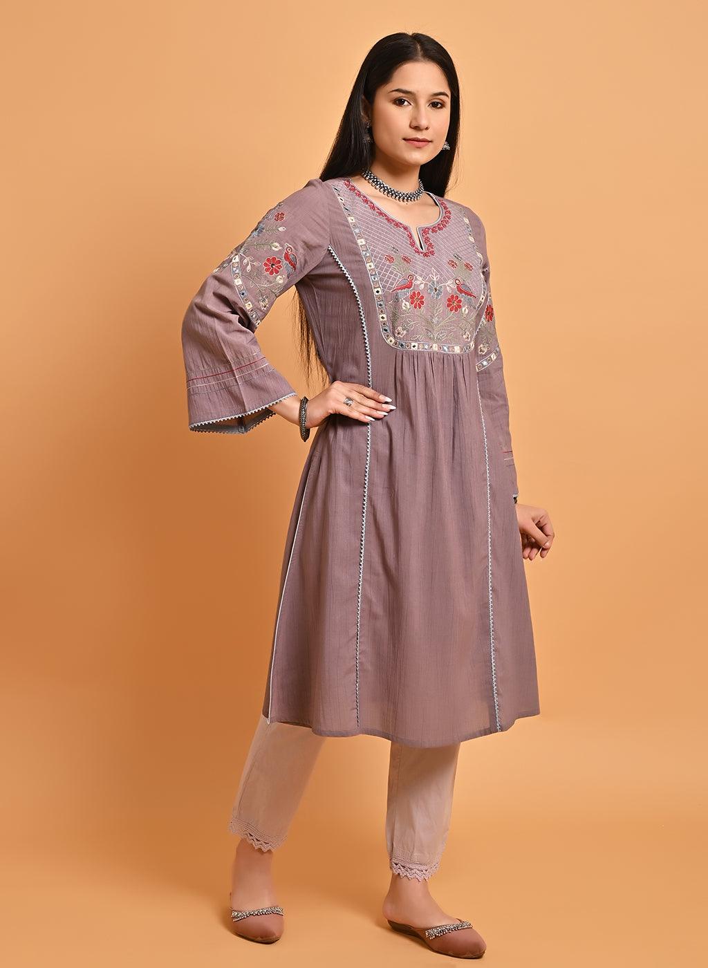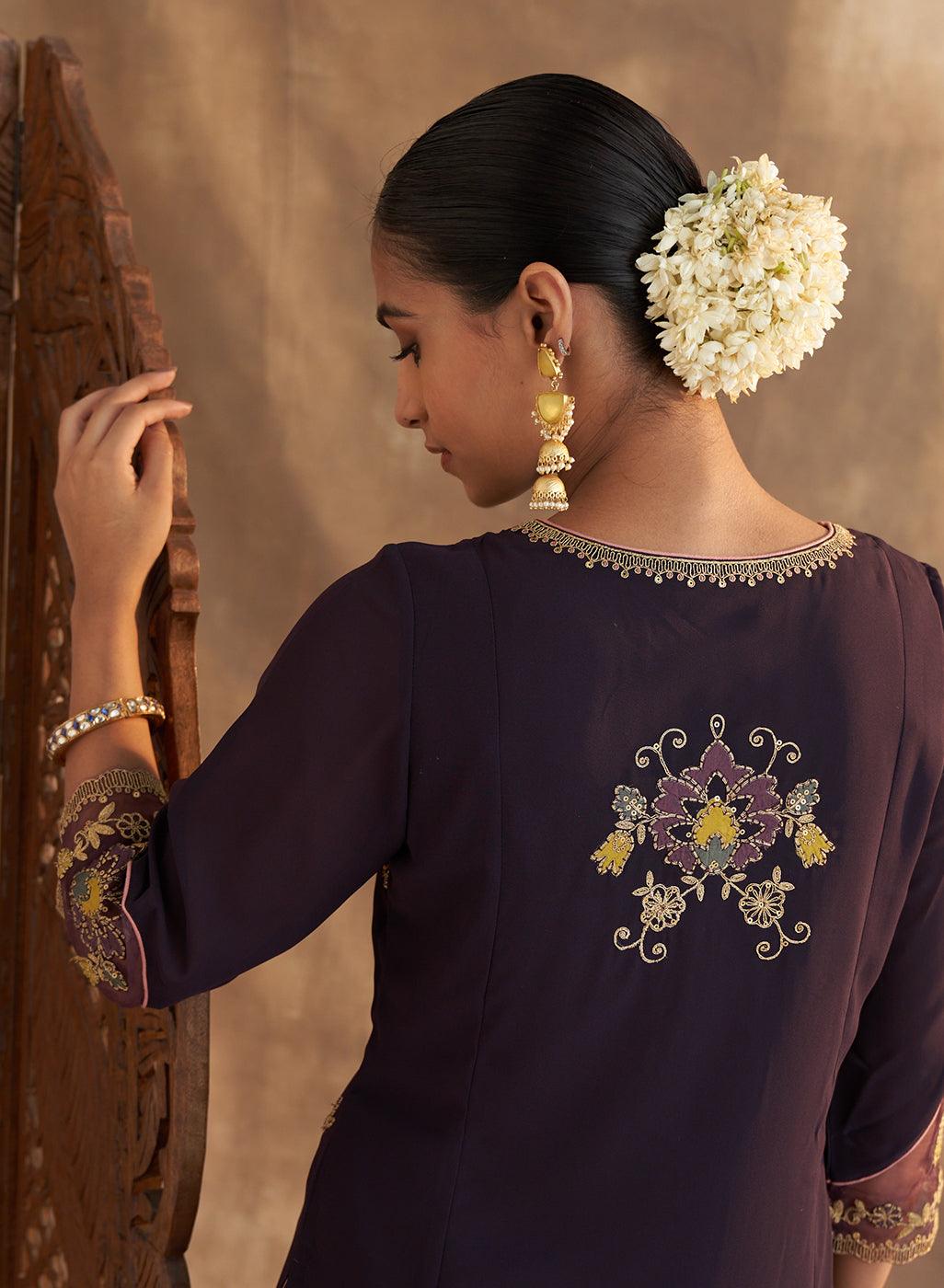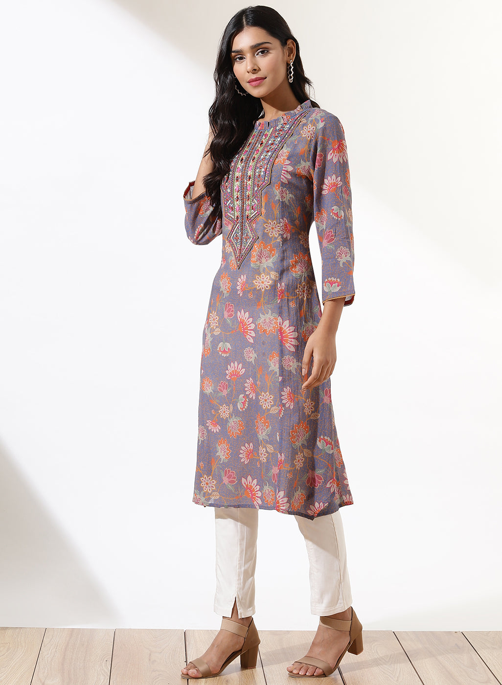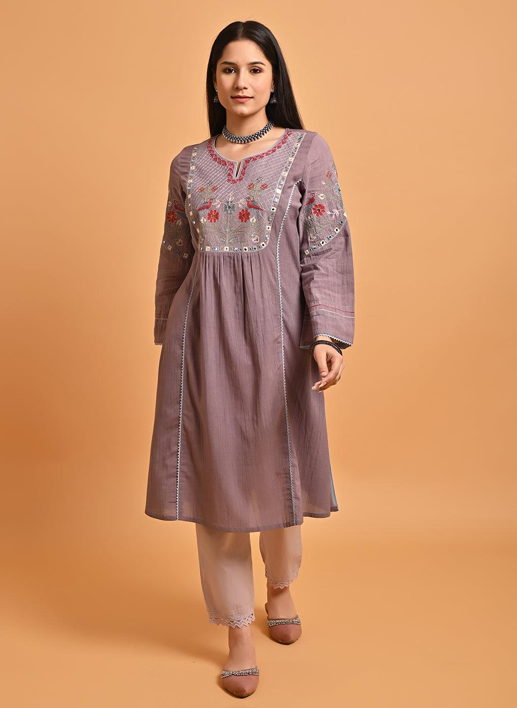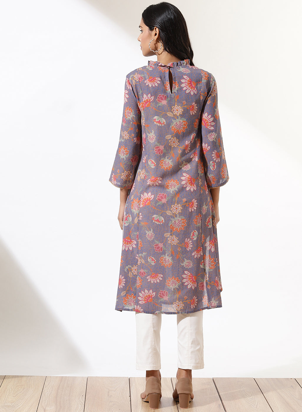 Purple Floral Print Dhaage Collection Kurta With Embroidery