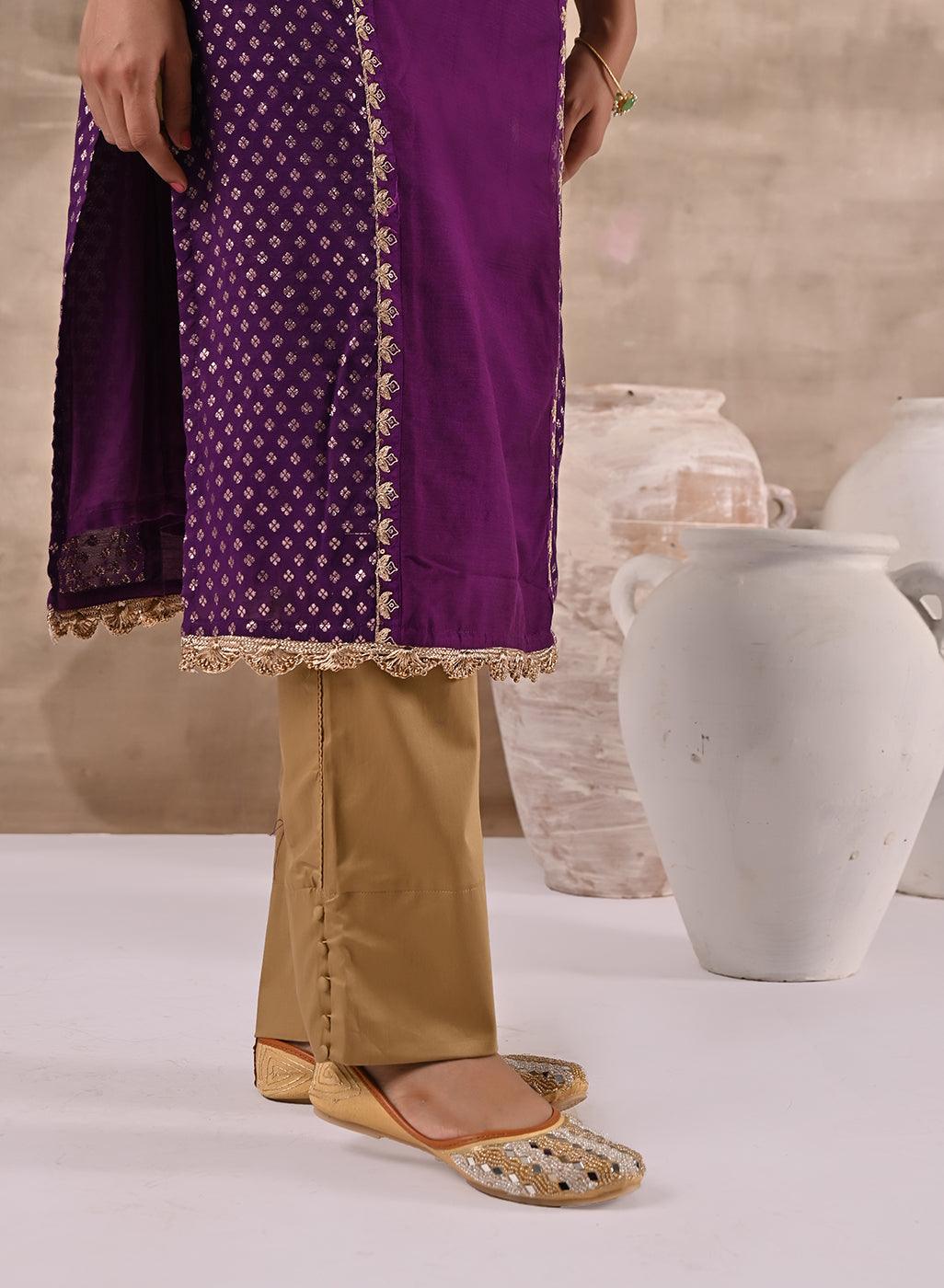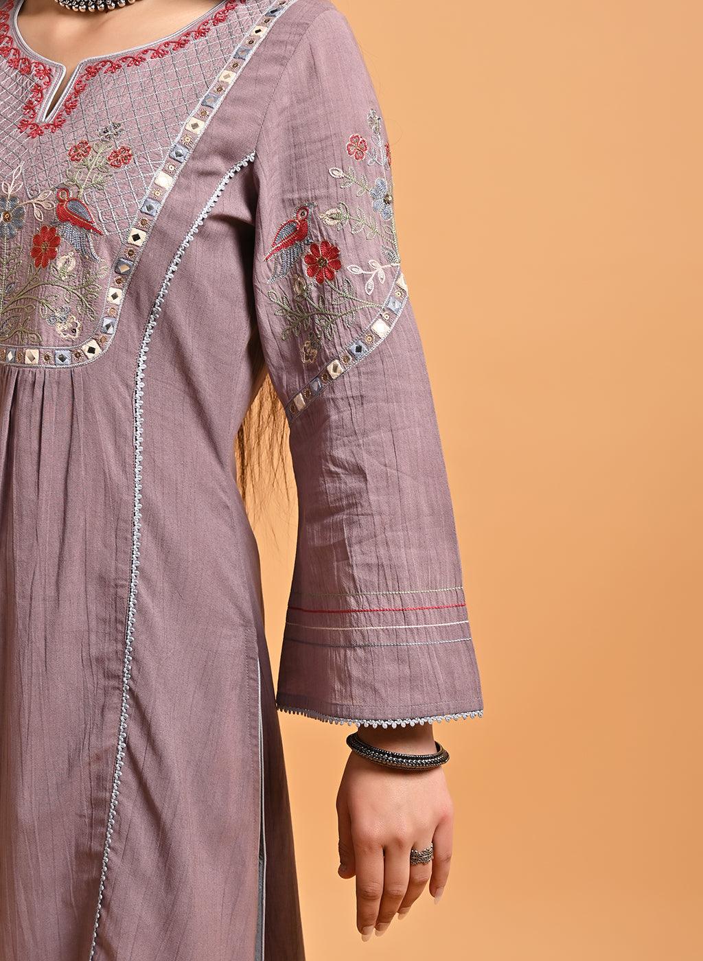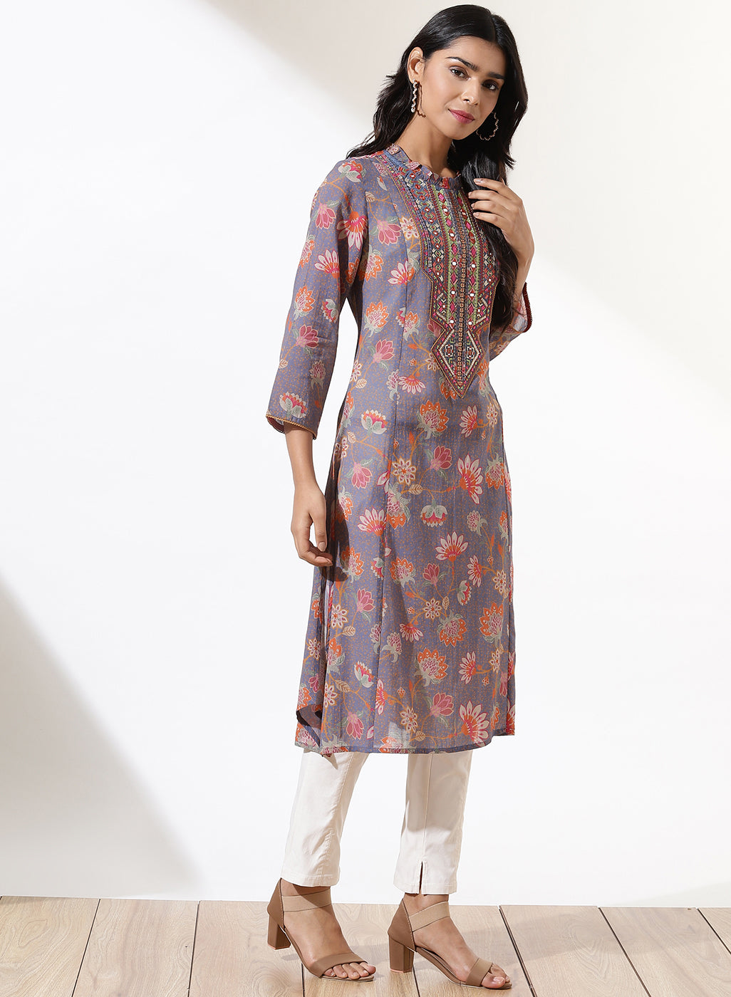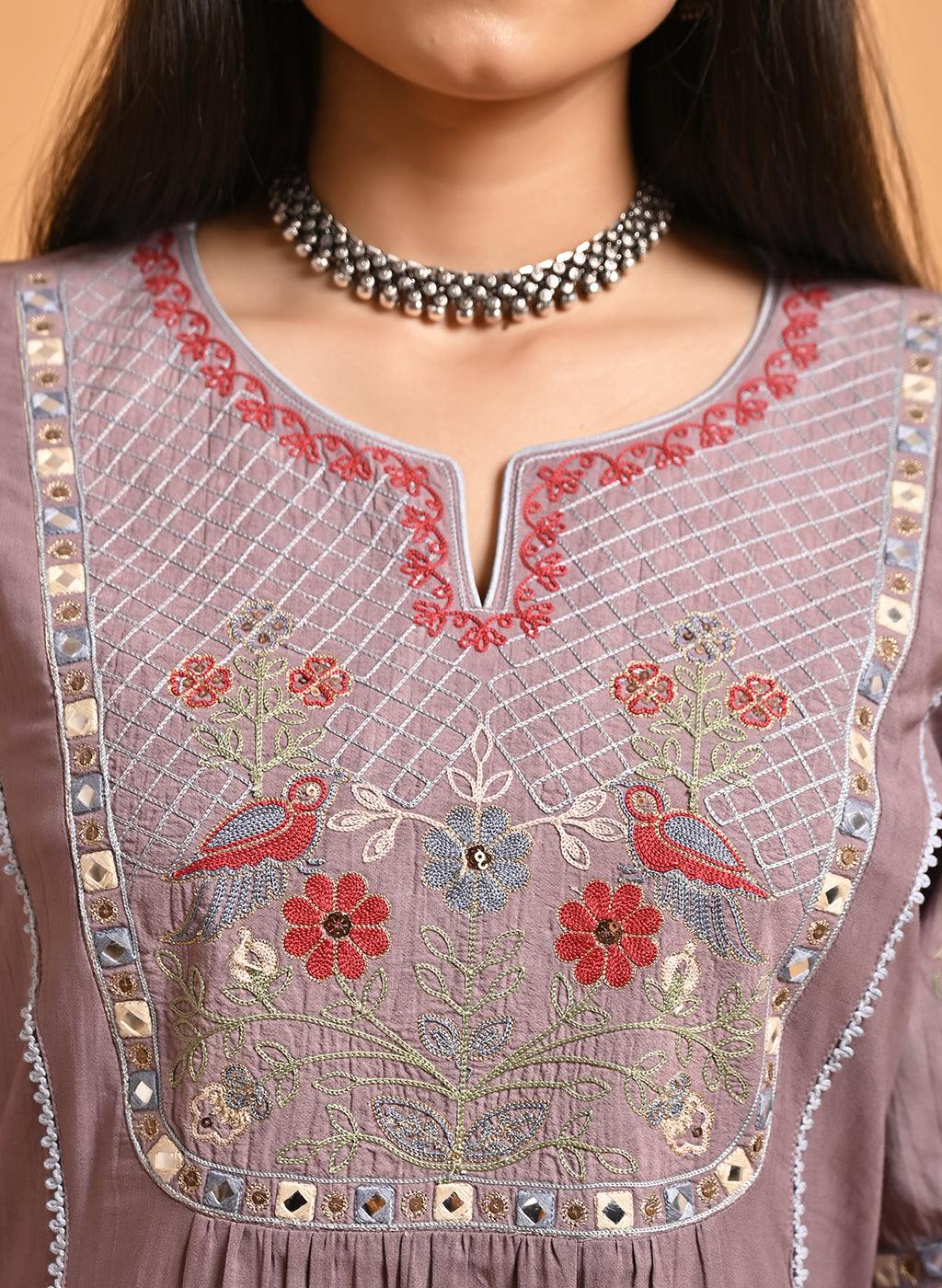 Purple Floral Print Dhaage Collection Kurta With Embroidery