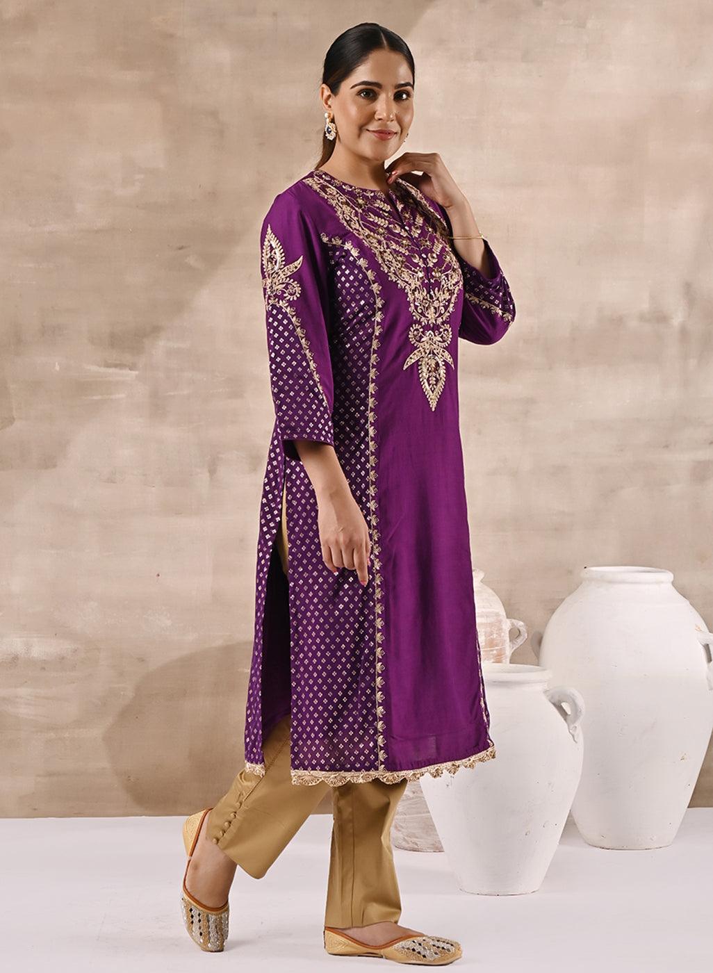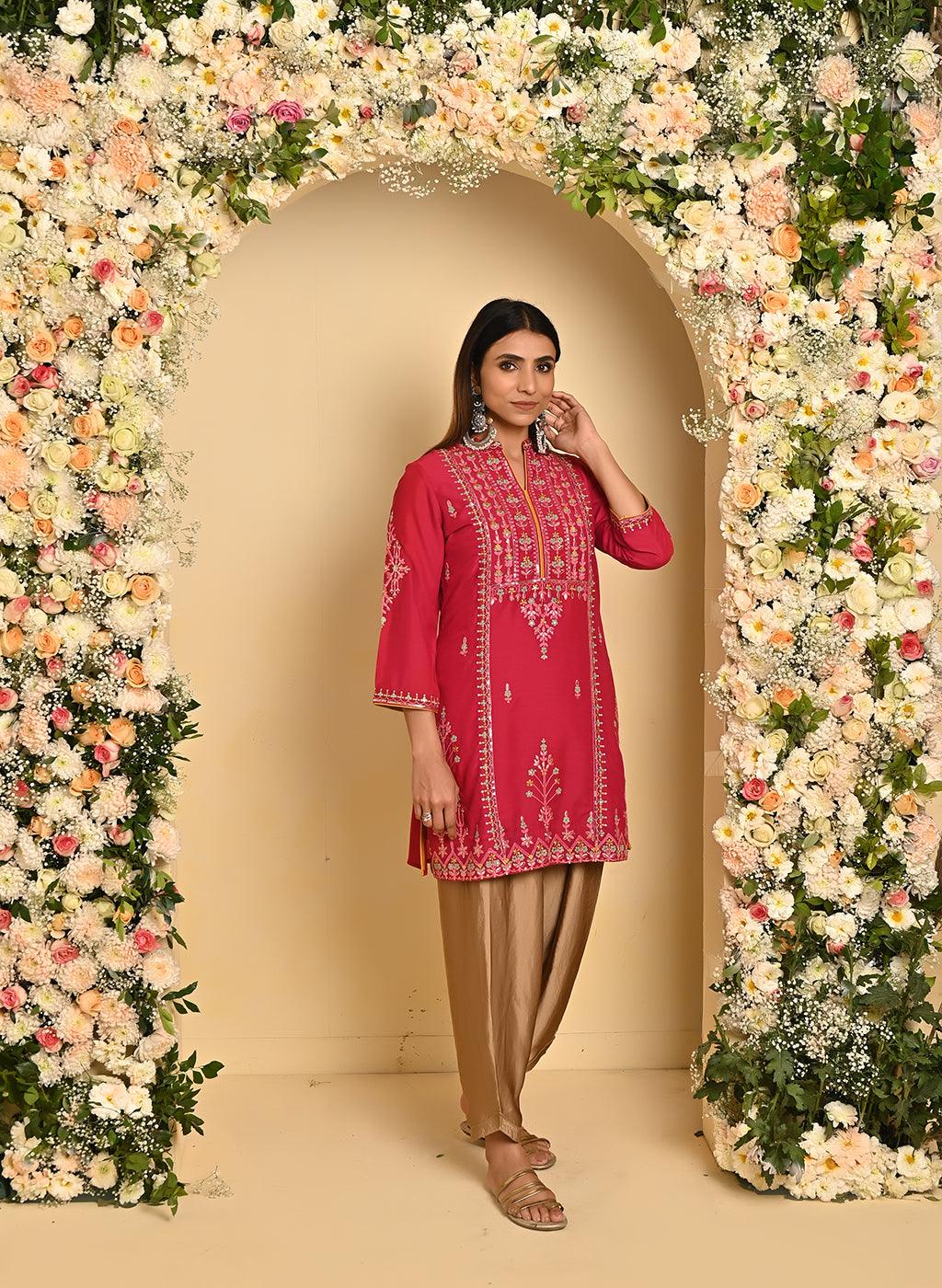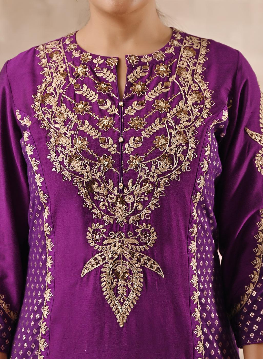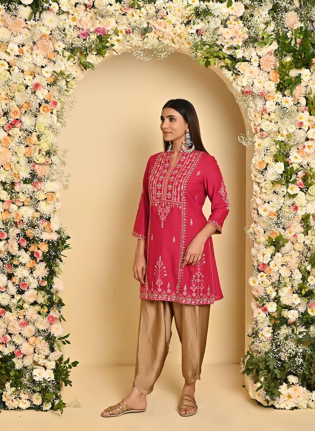 Fuchsia Kurta Set With Embroidery - Lakshita