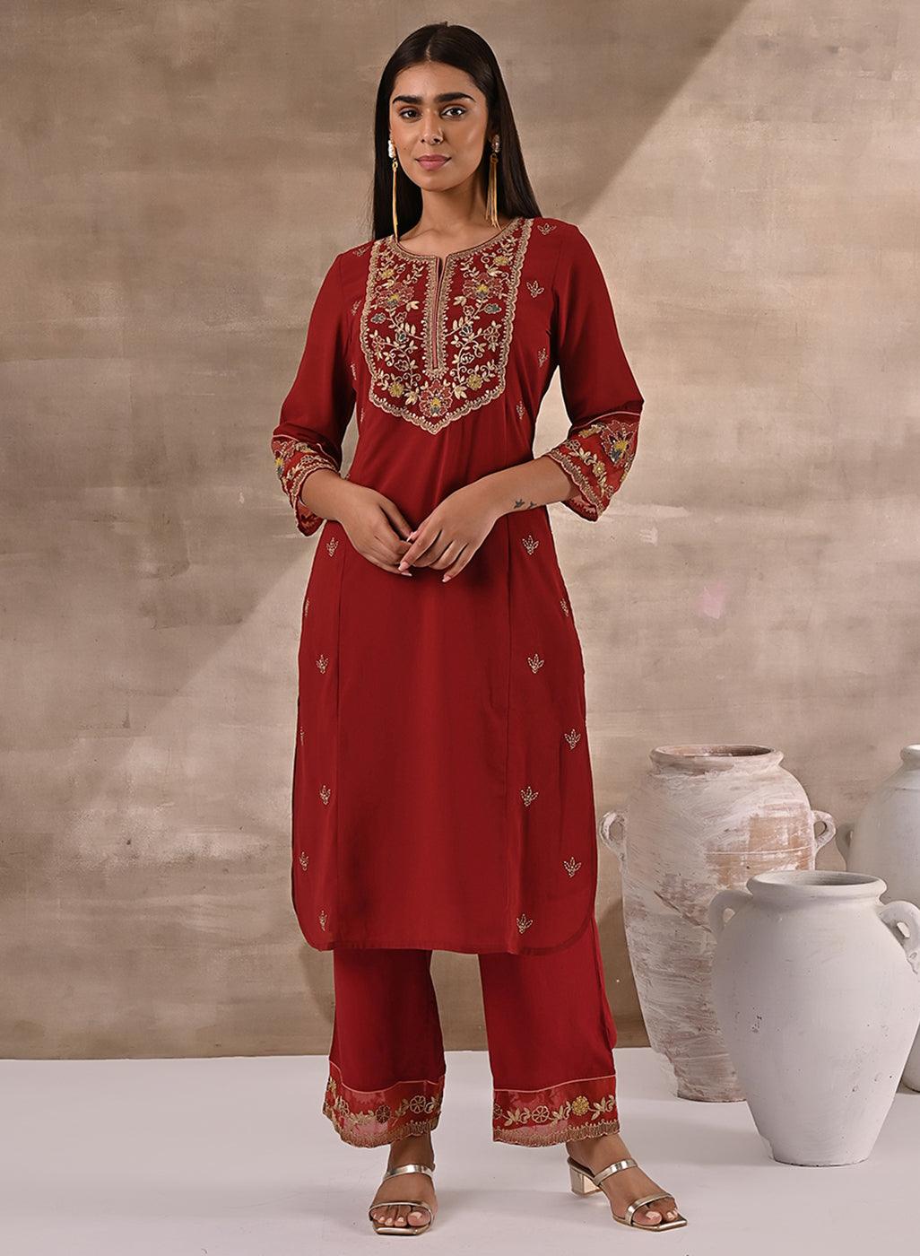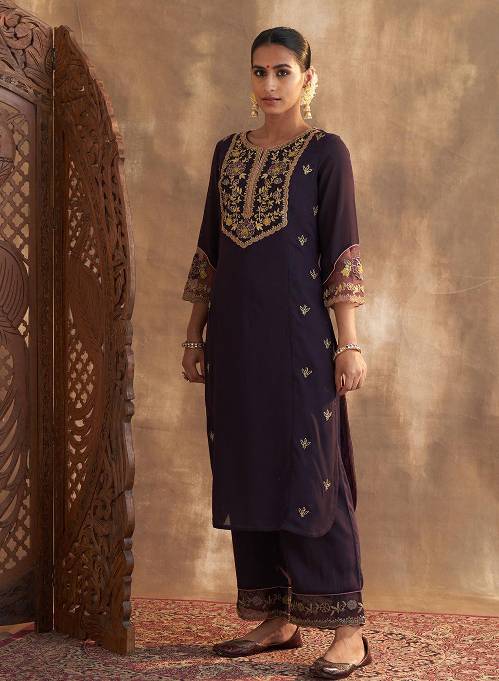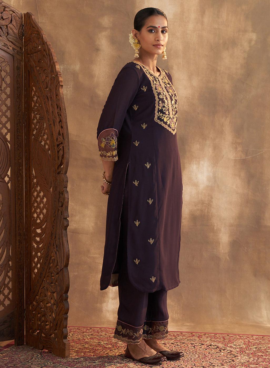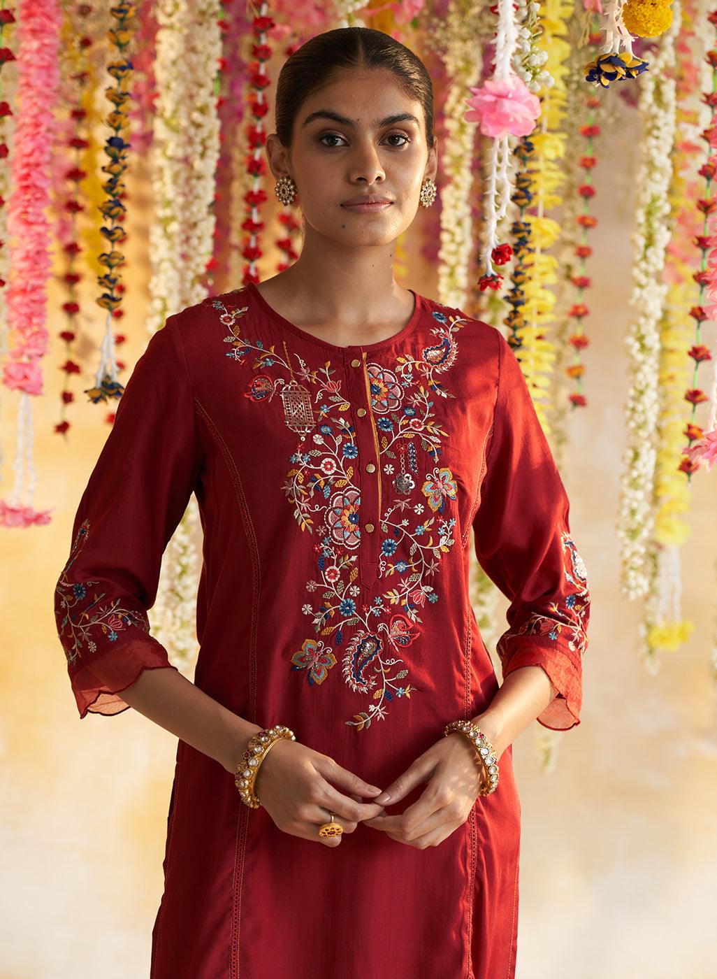 Fuchsia Kurta Set With Embroidery - Lakshita