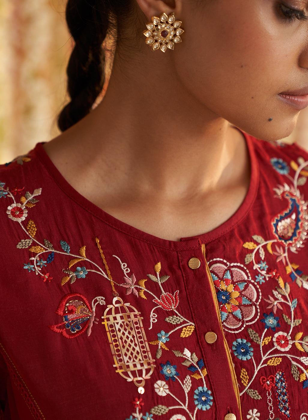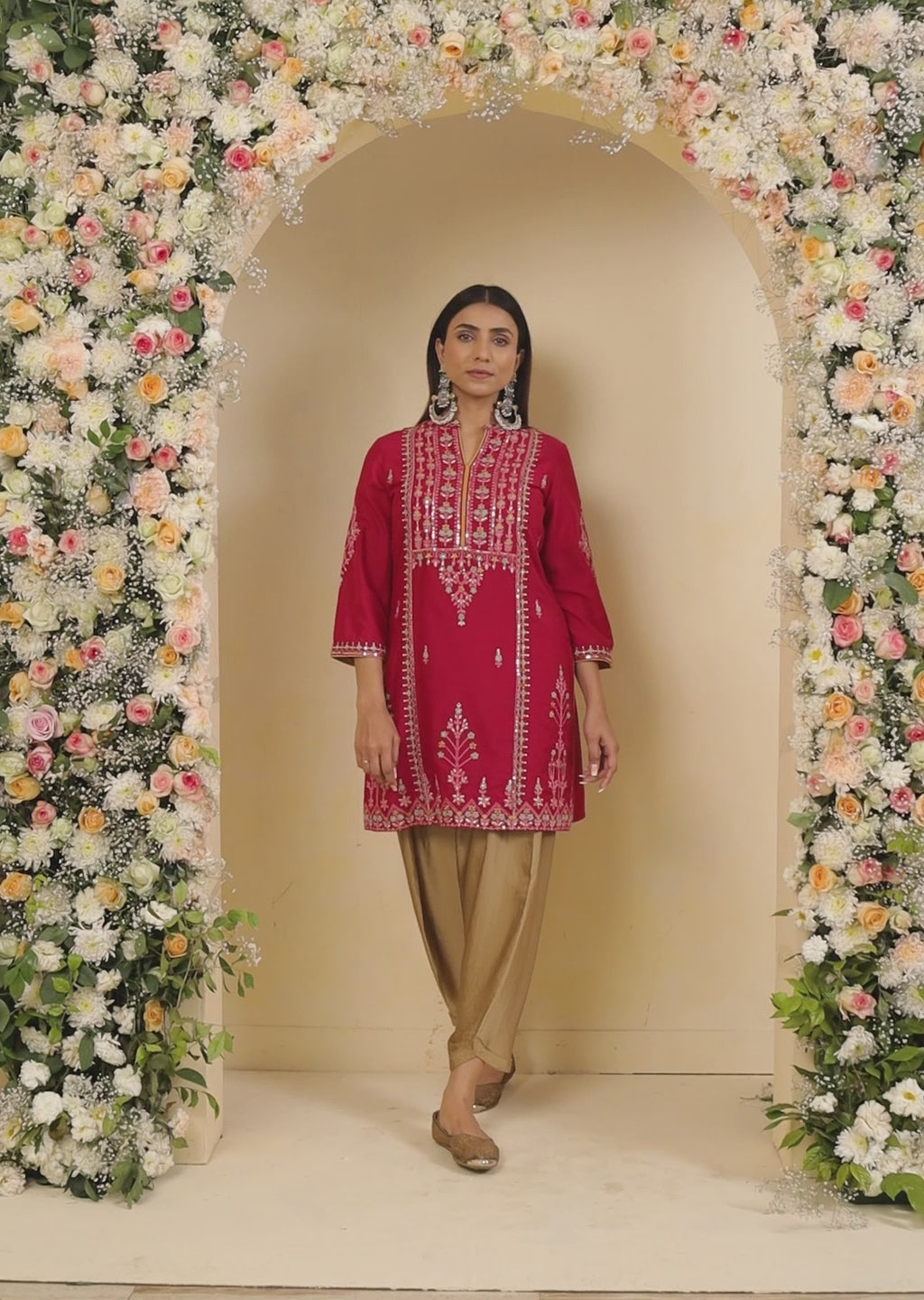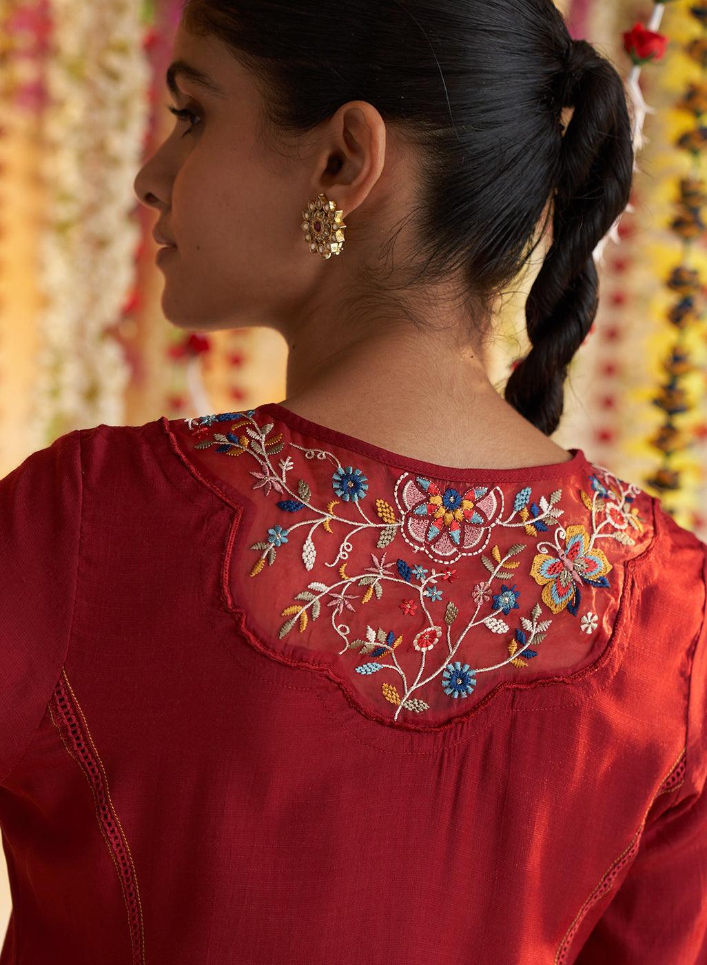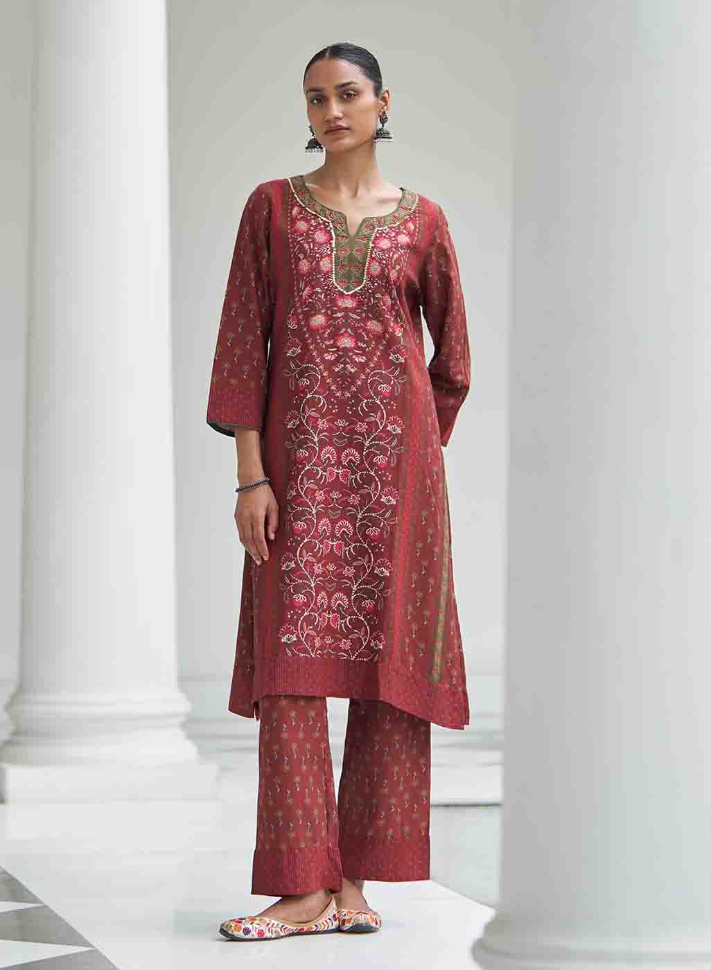 Fuchsia Kurta Set With Embroidery - Lakshita