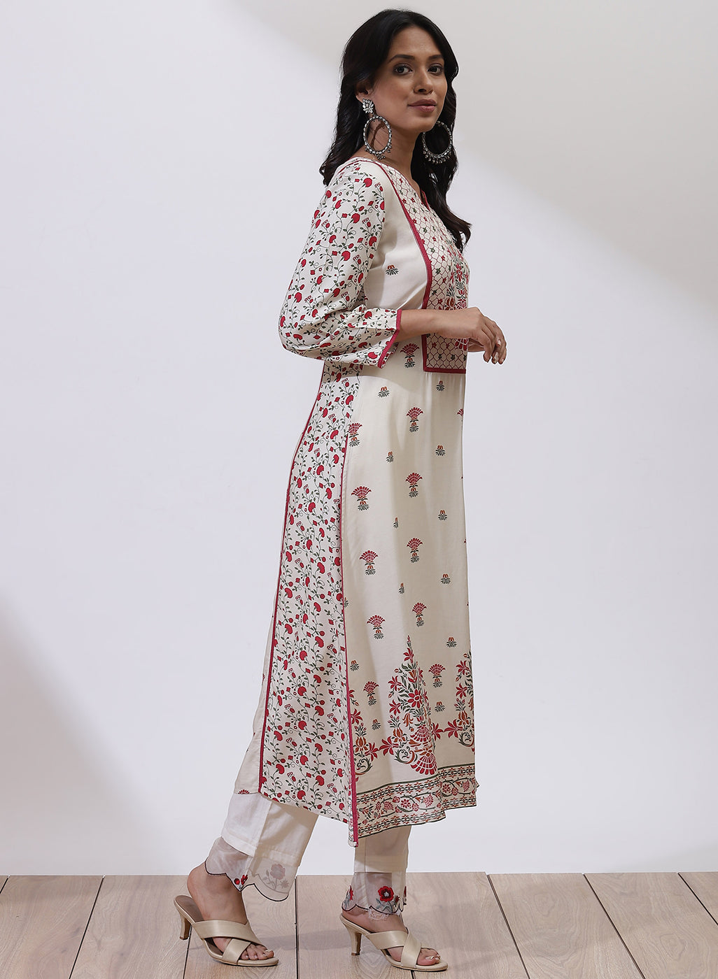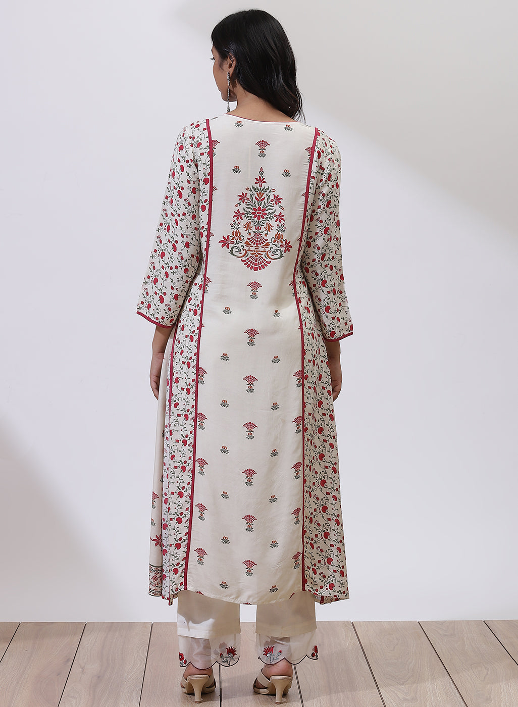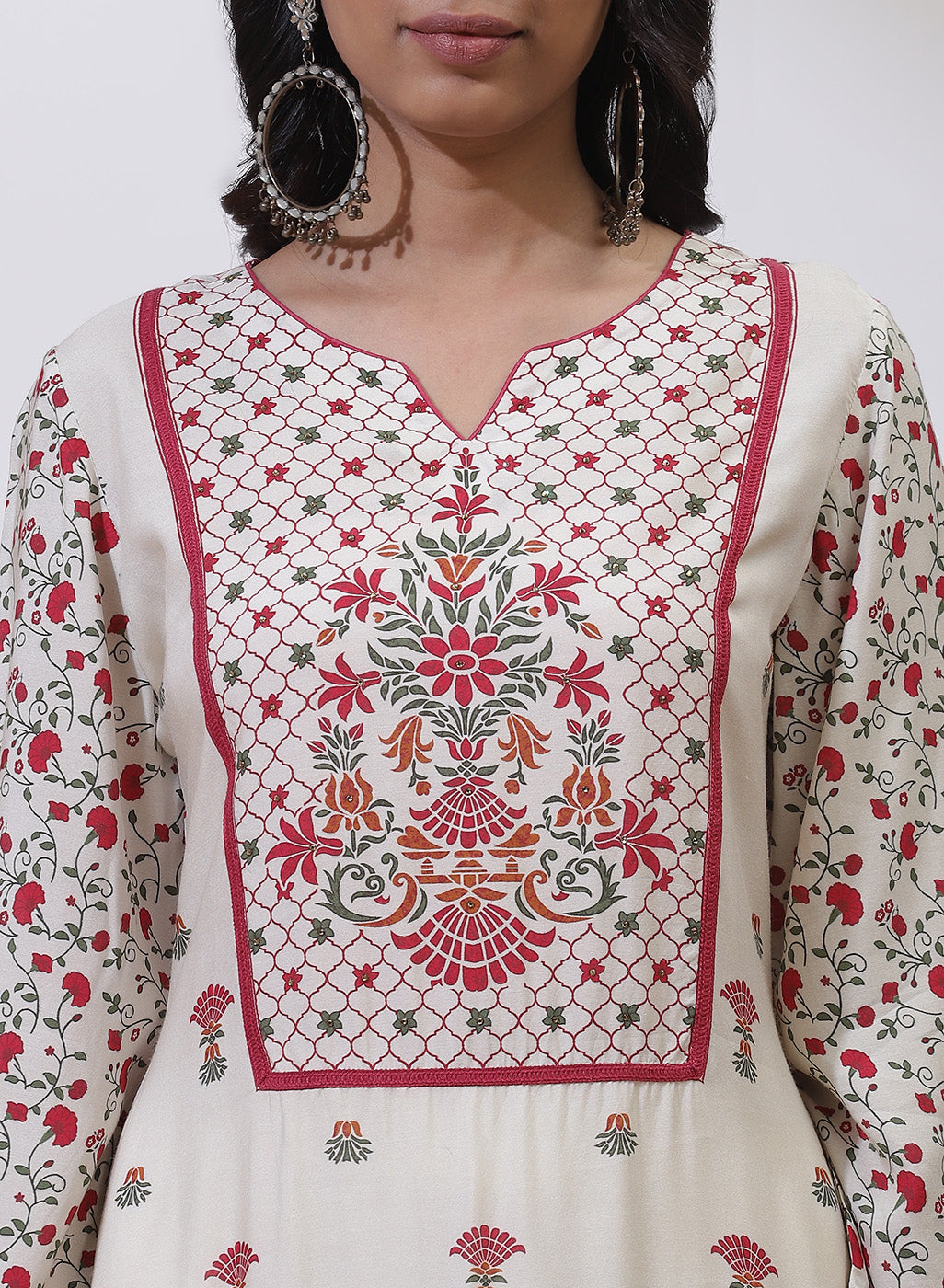 Ivory Modal Printed Kurta Set with side Paneled Design