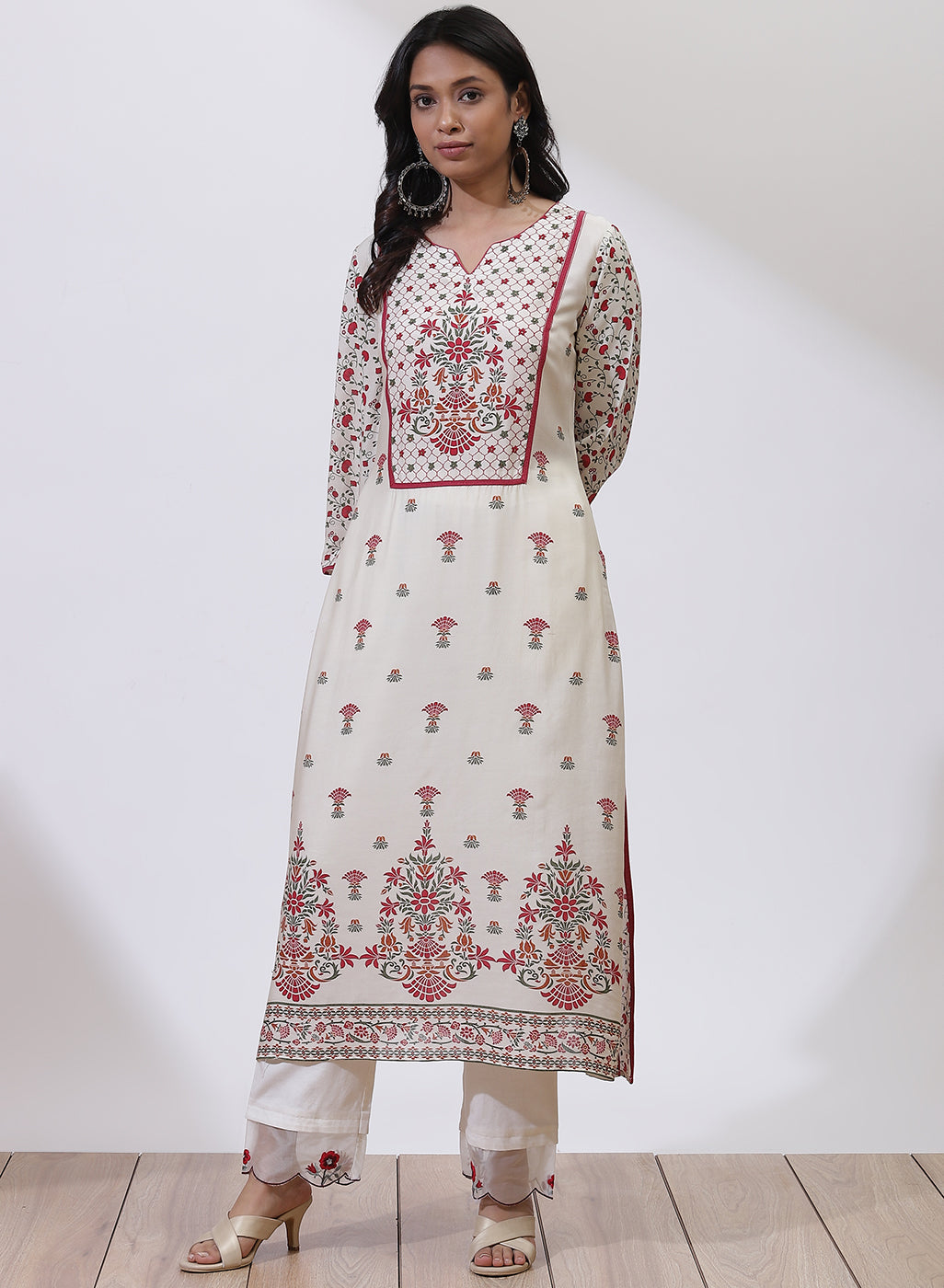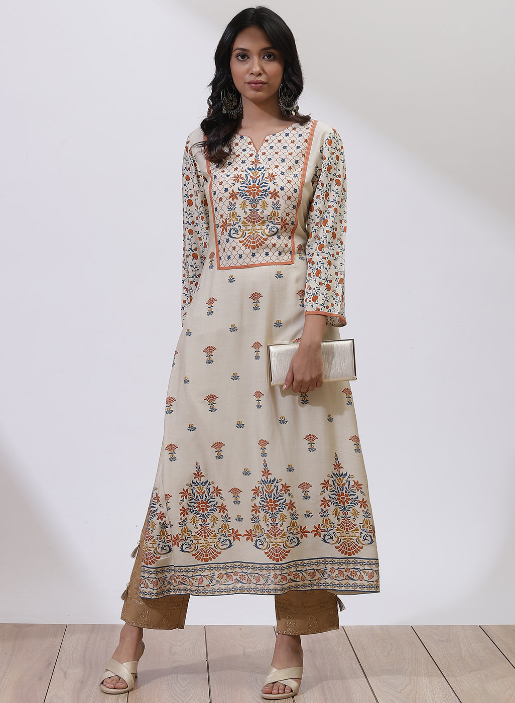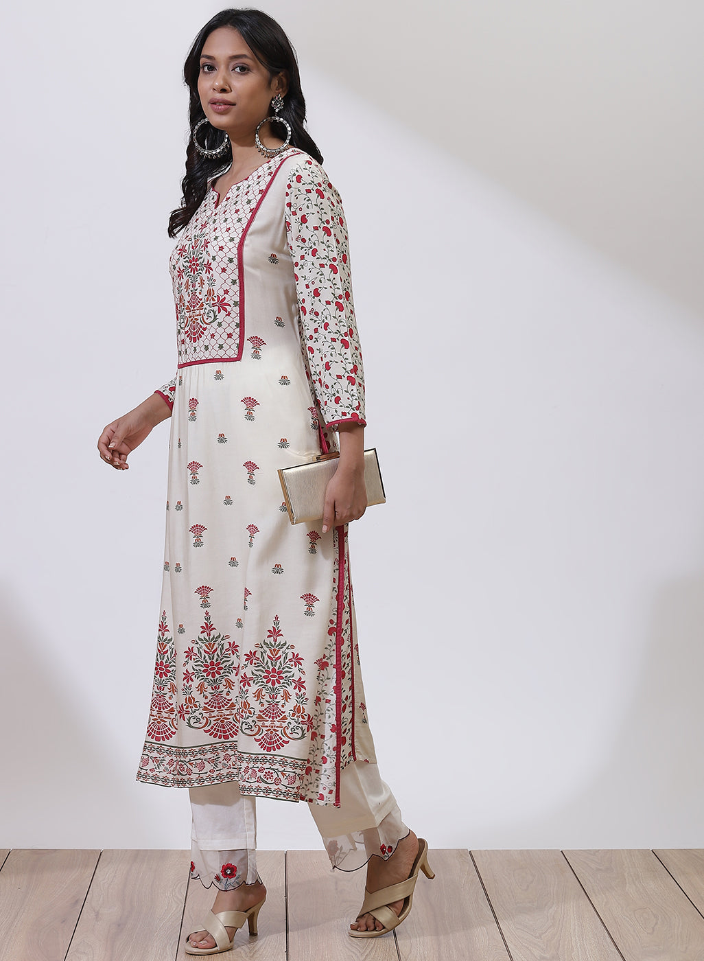 Ivory Modal Printed Kurta Set with side Paneled Design