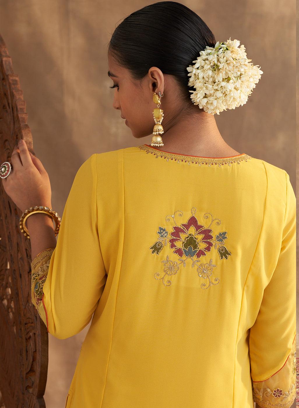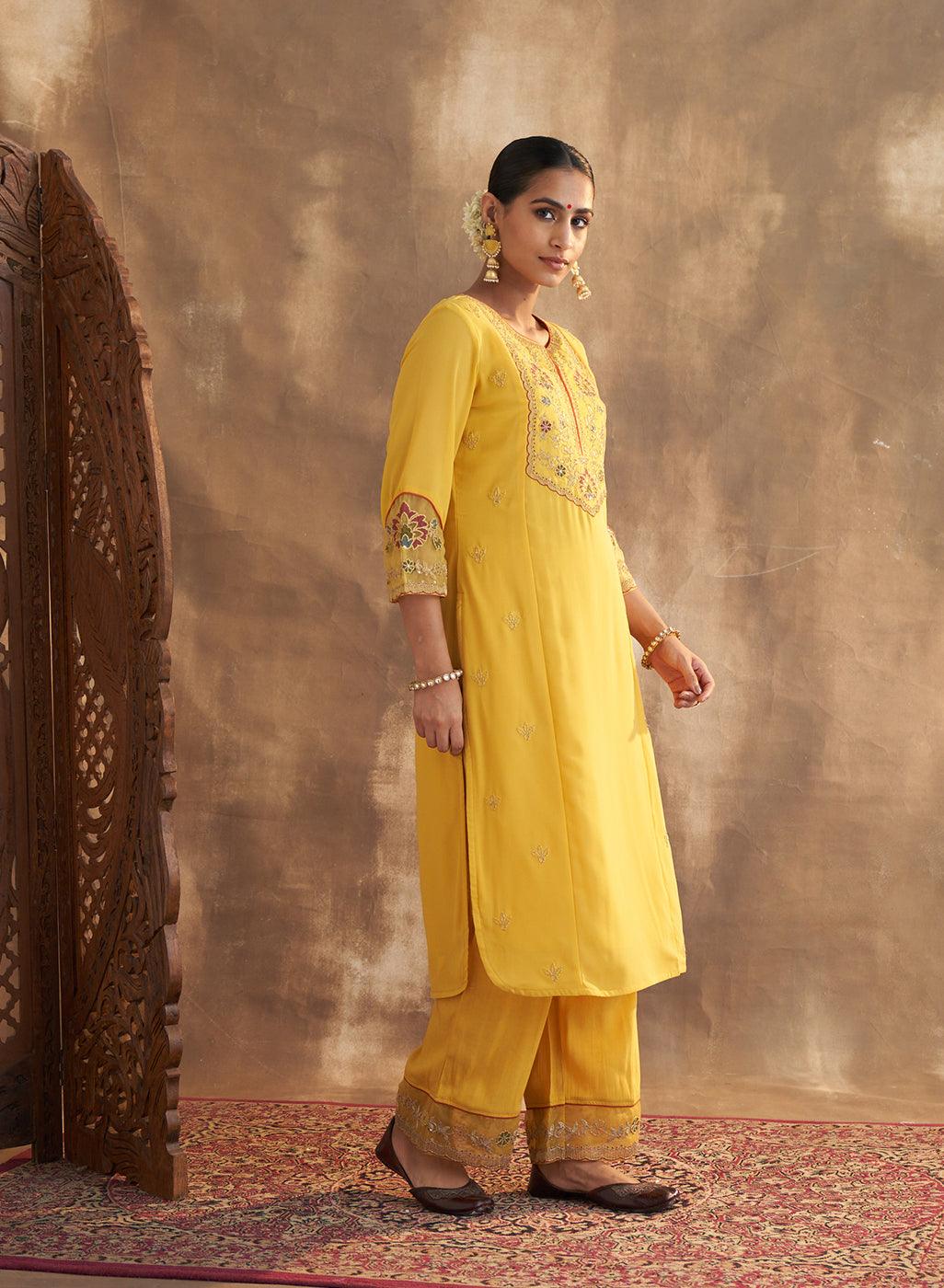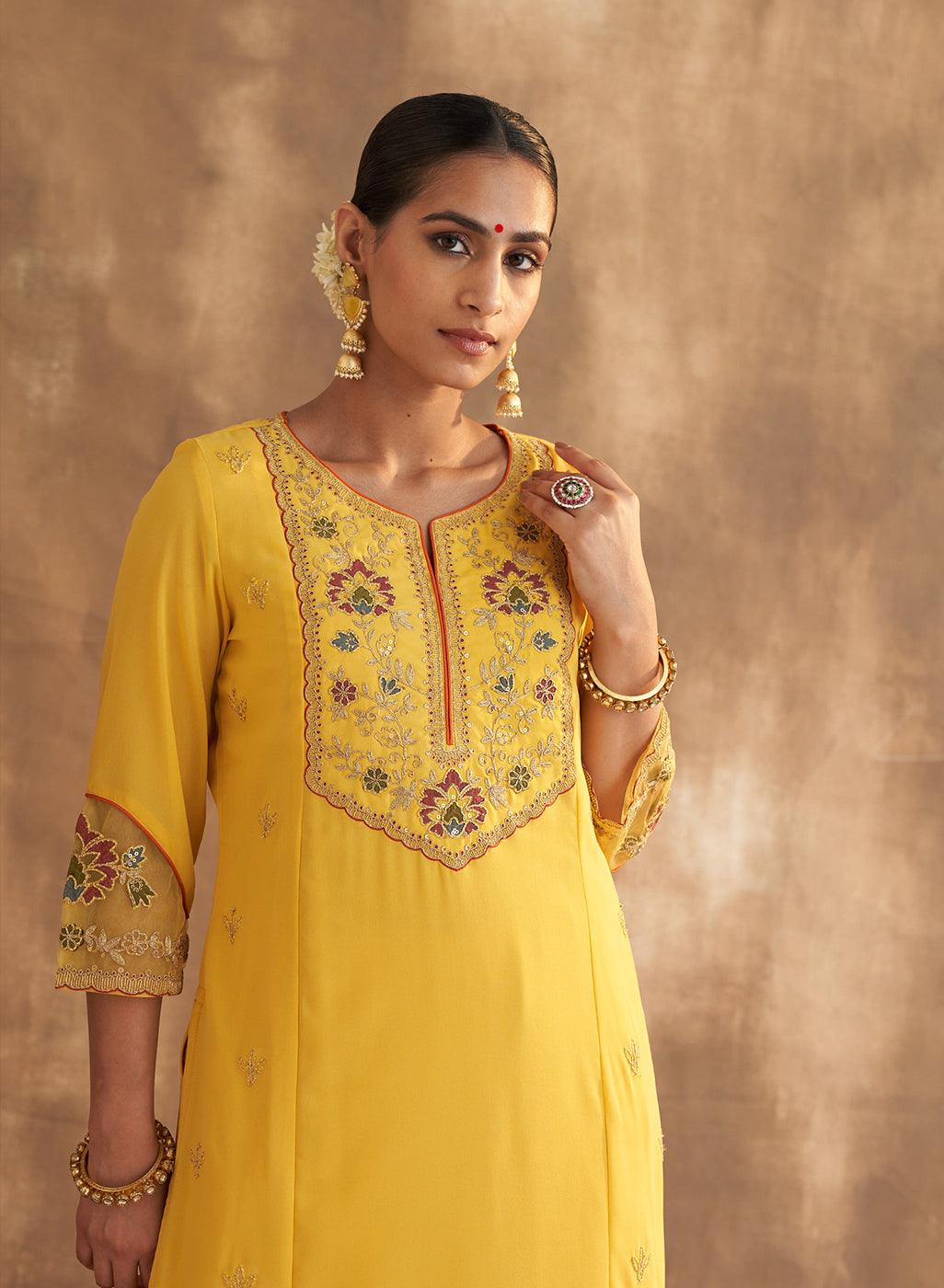 Daisy Yellow Kurta Set With Embroidery - Lakshita