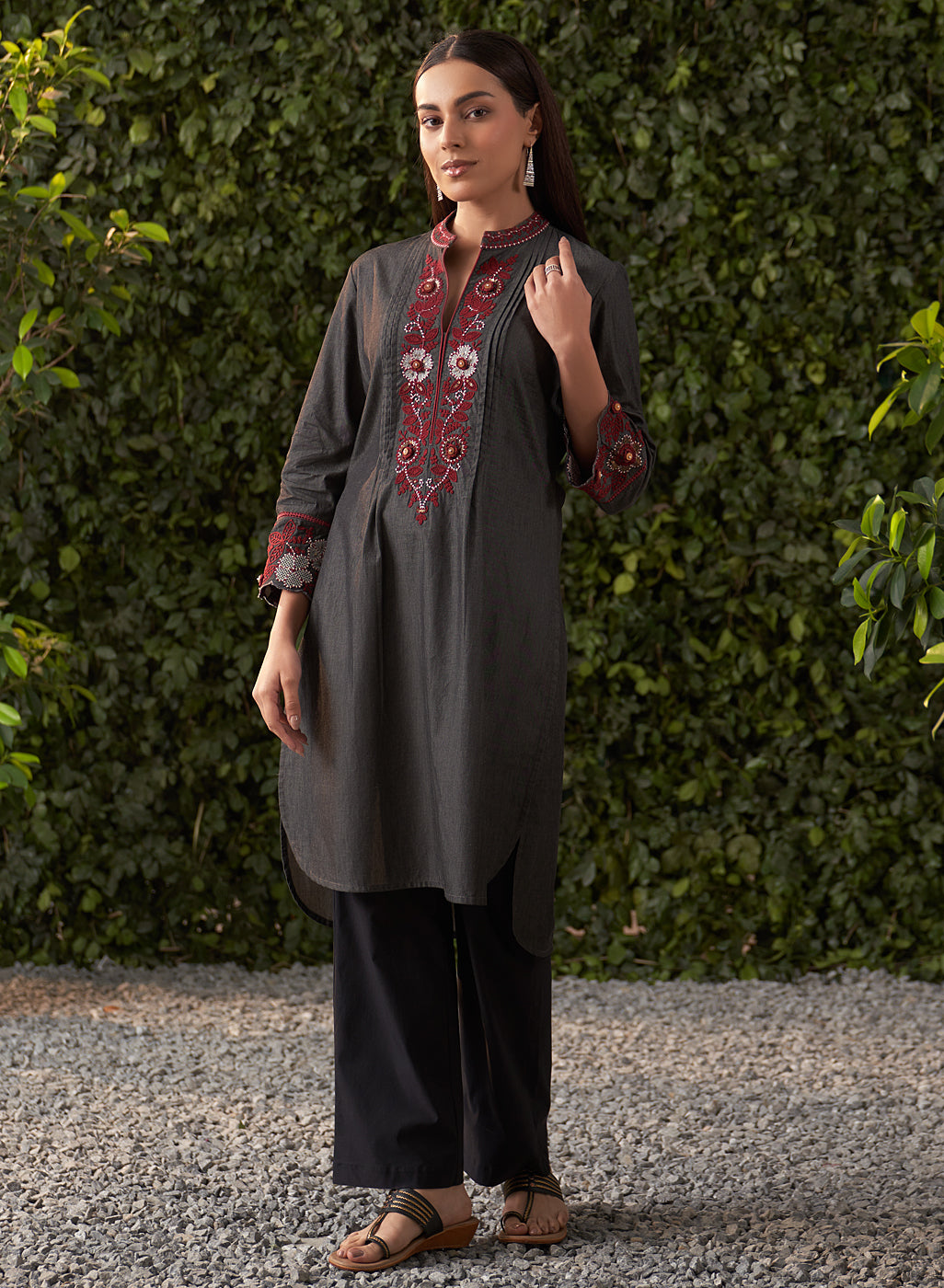 Dinah Grey Embroidered Denim Designer Kurta for Women