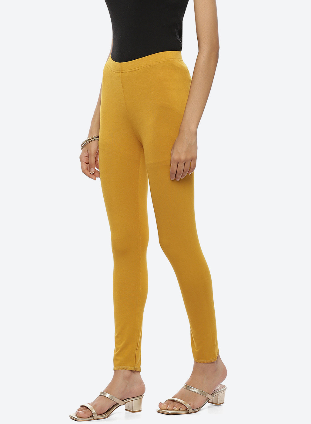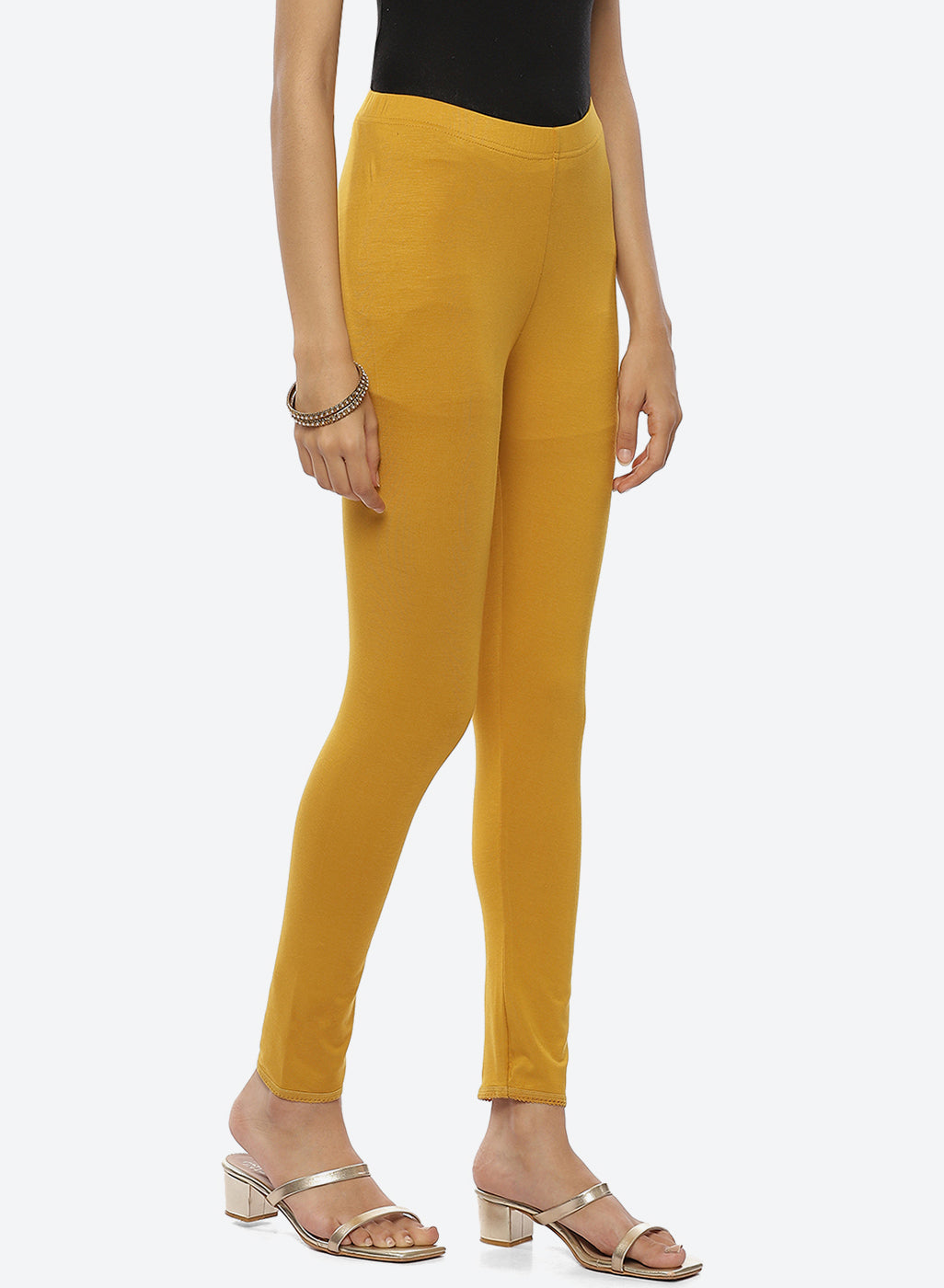 Farah Dark Yellow Viscose Lycra Leggings for Women
