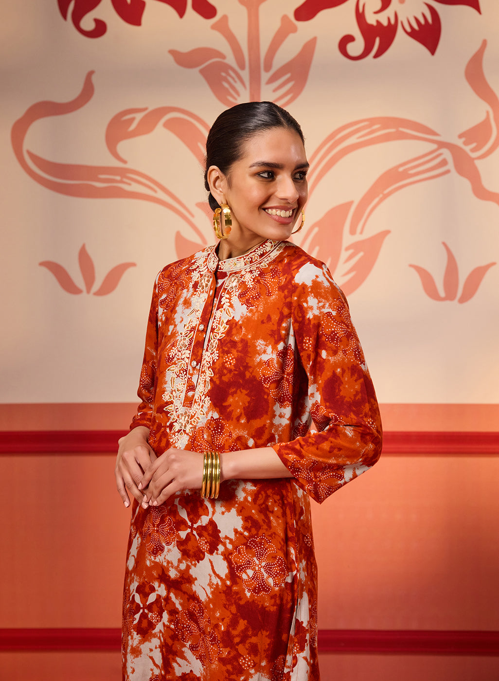 Nisar Pumpkin Orange Viscose Rayon Printed Tunic for Women