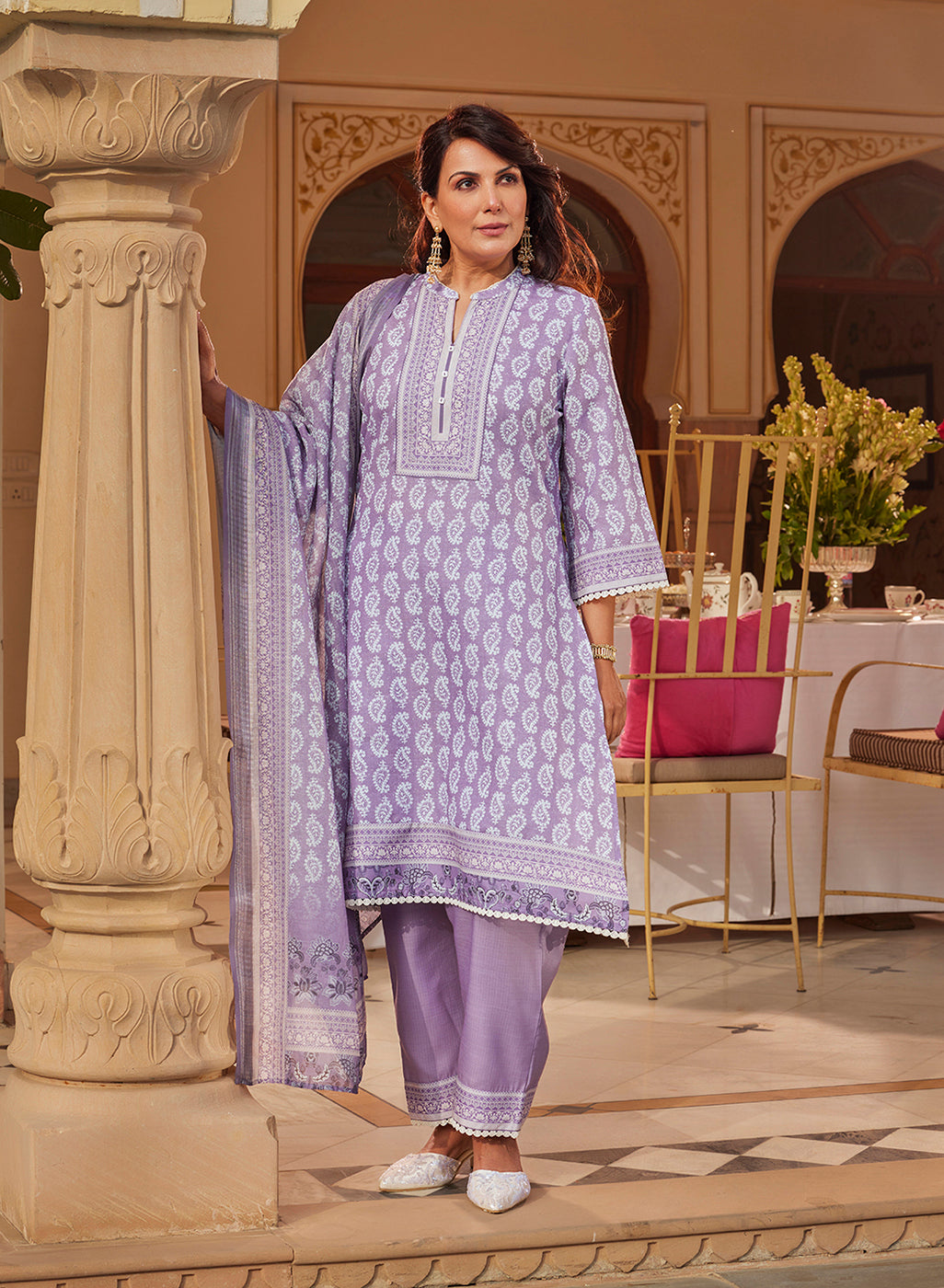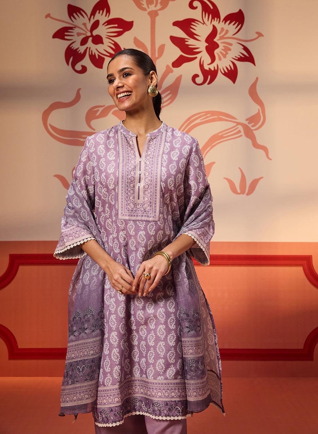 Beige Kurta for Women with Threadwork and Lace Detailing
