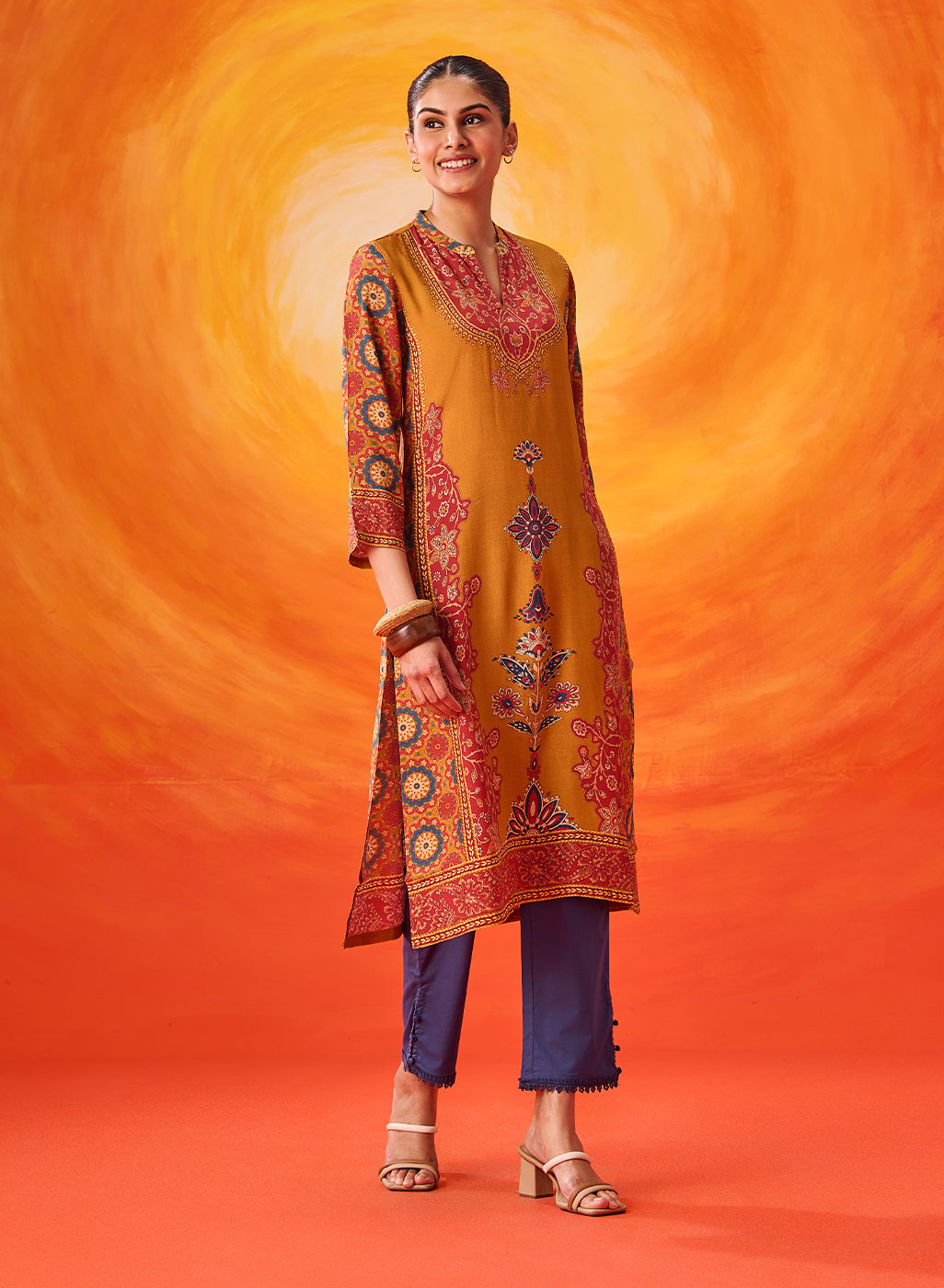 - All-over printed A-line kurta for an elegant and flattering silhouette.
