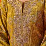 - Dori embroidery with sequin accents along the notched neckline and sleeve hems.
