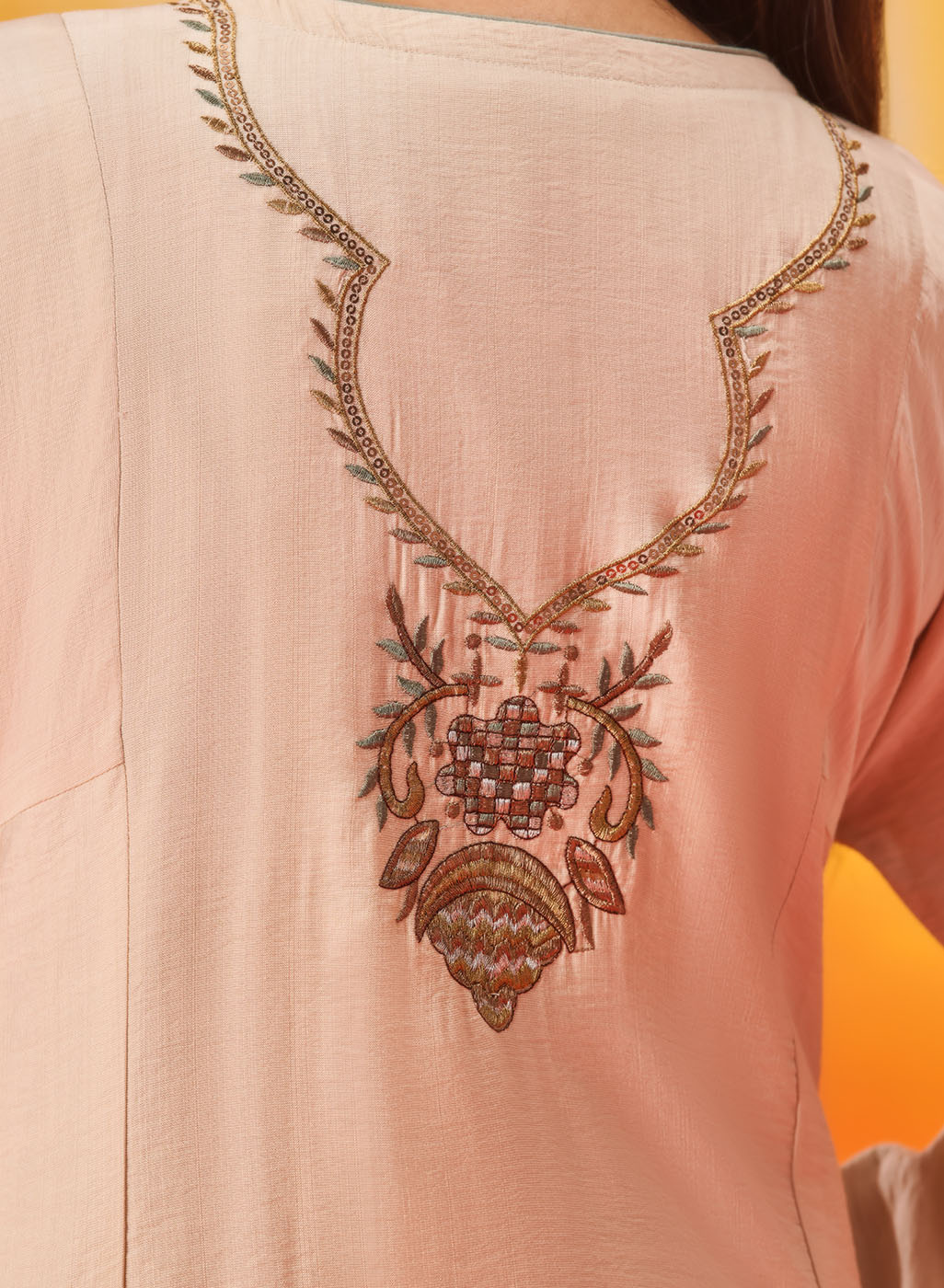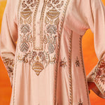 - Resham and zari embroidery with sequin highlights on the neckline, front and sleeves.
