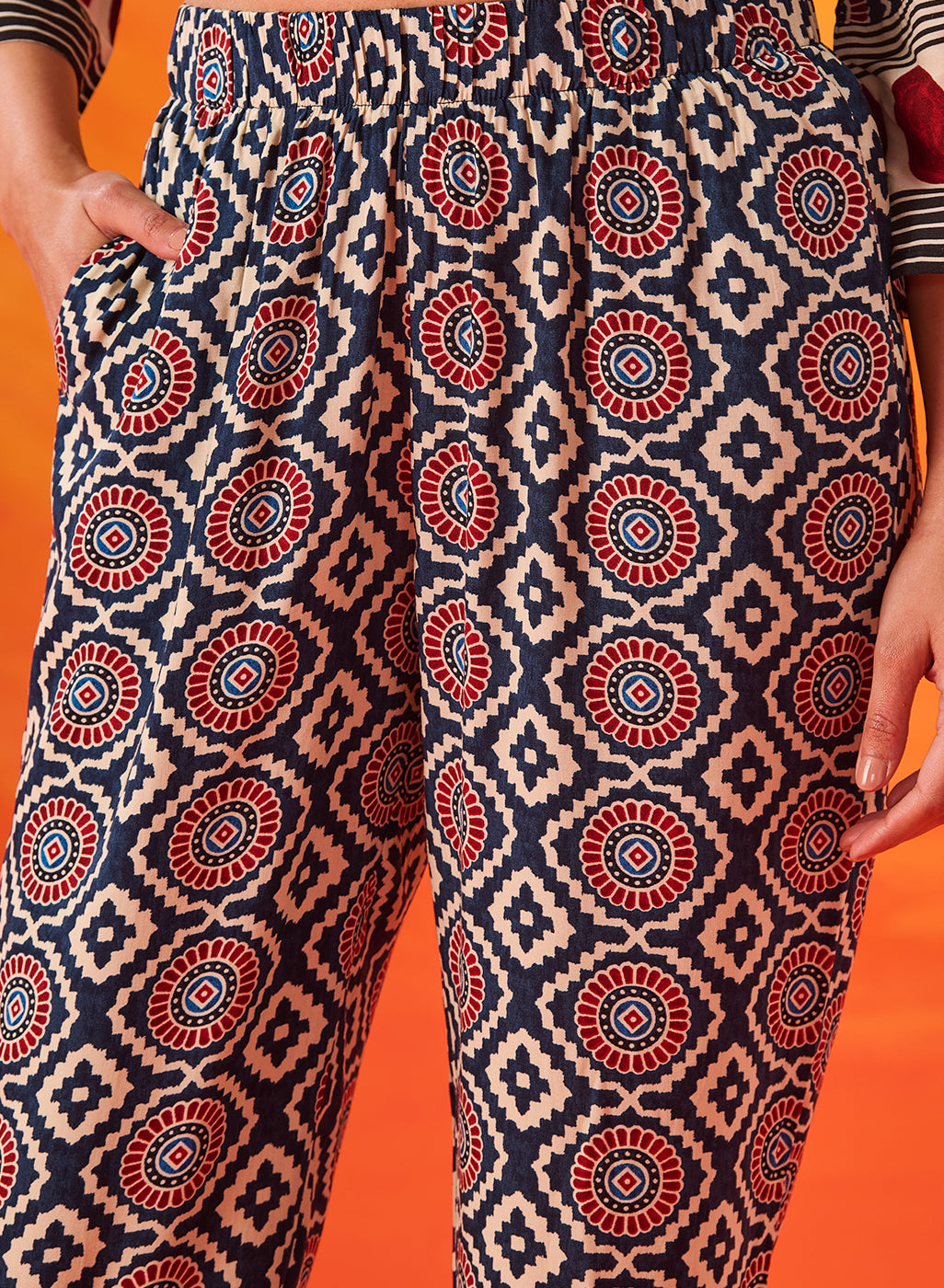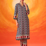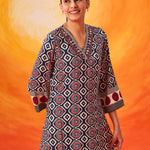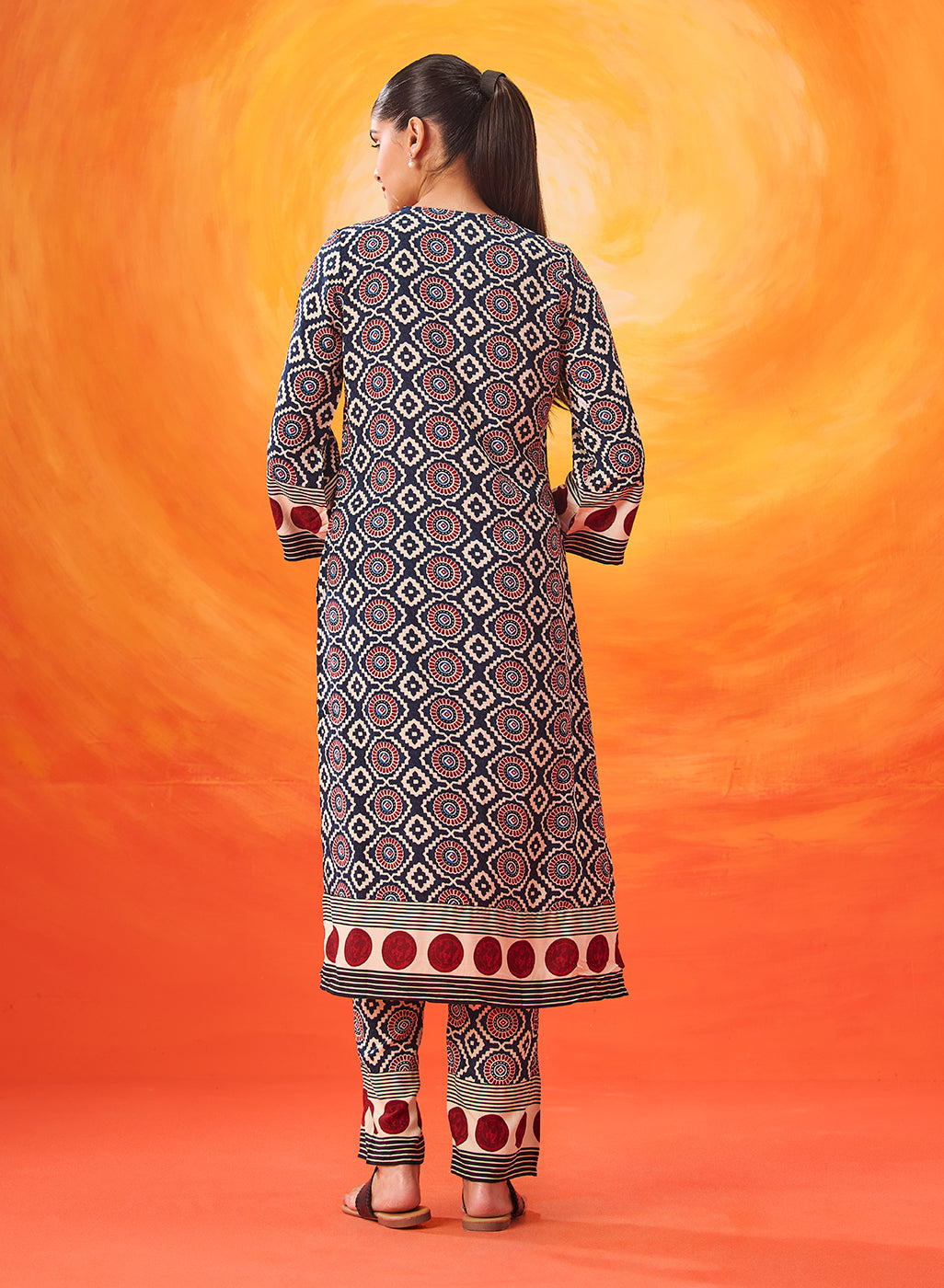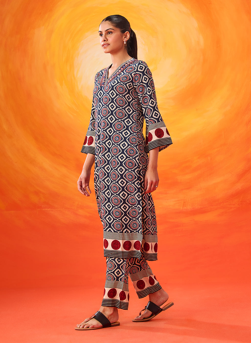 Simple, comfortable and effortless, this navy printed kurta set is designed for everyday dressing. The geometric print keeps the look interesting, while the minimal embroidery on the neckline adds just the right touch of detail without feeling heavy.