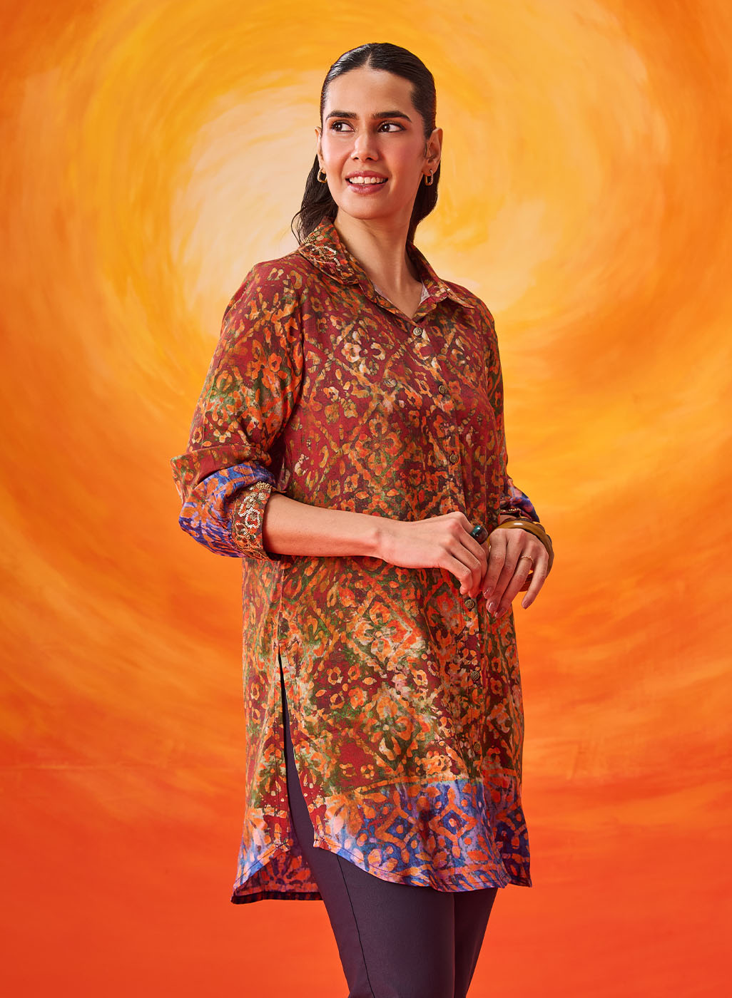 Red Printed Viscose Shantoon Tunic