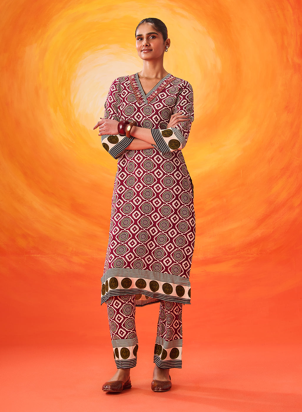 Wine Printed Rayon Kurta Set