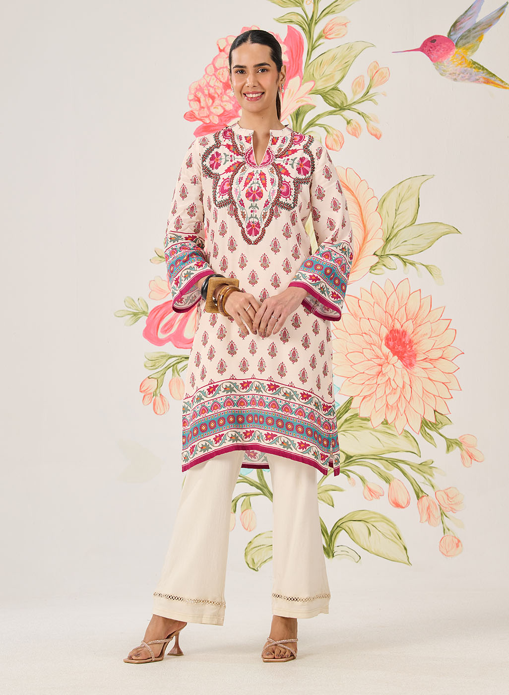Fuchsia Printed Viscose Shantoon Kurti