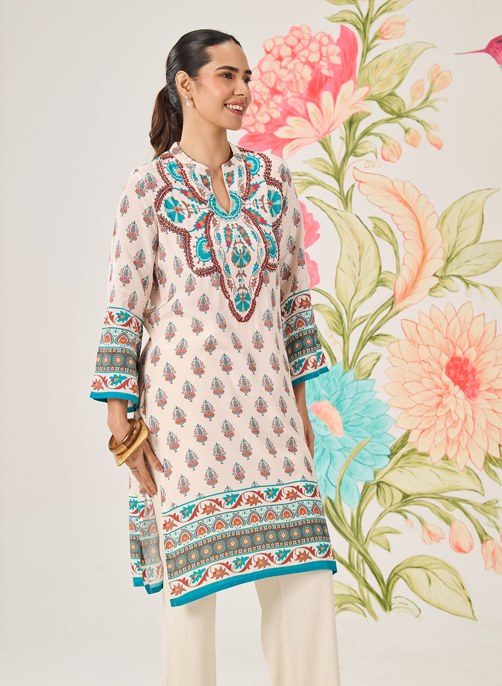 Teal Printed Viscose Shantoon Kurti