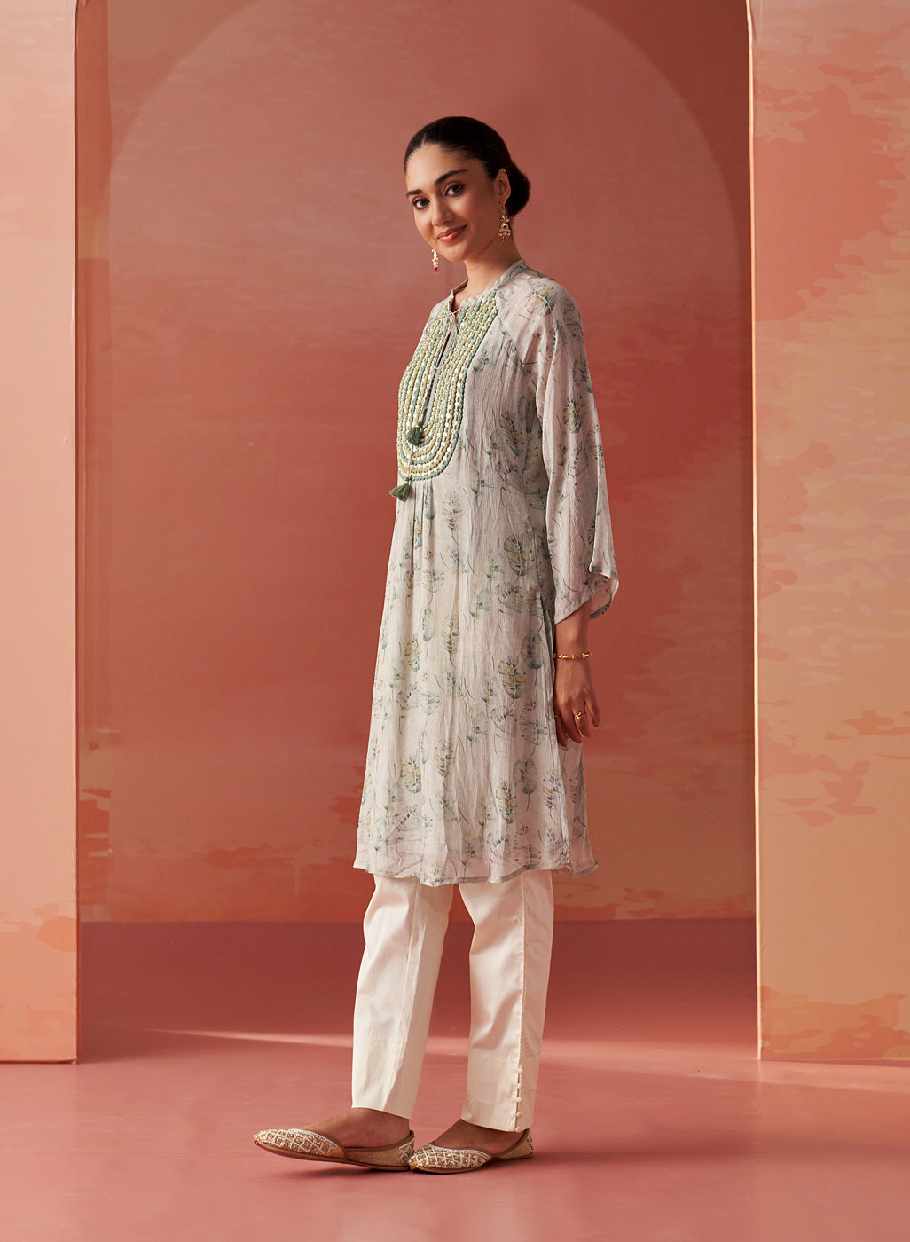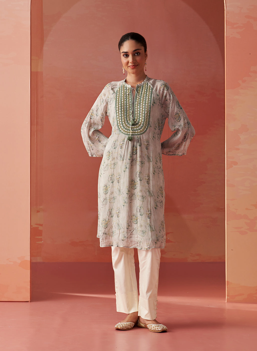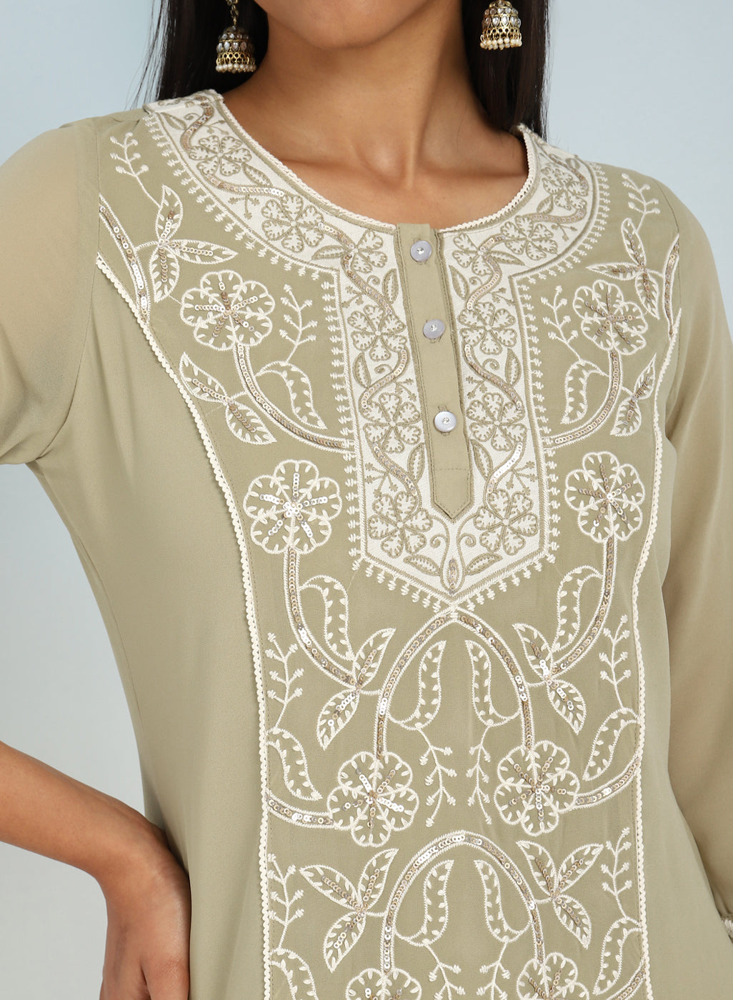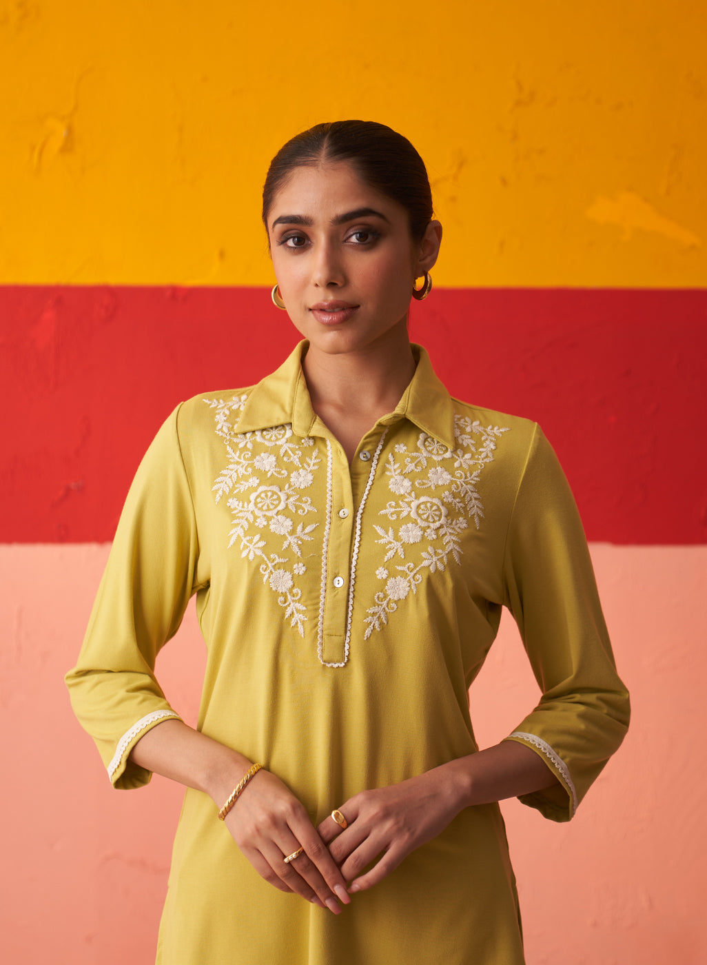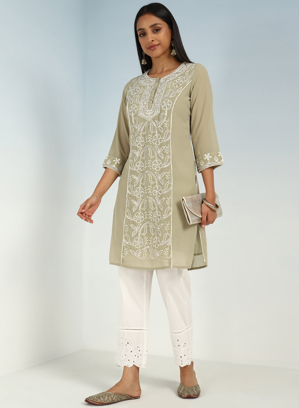 Seaweed Green Embroidered Woollen Kurti for Women with Mirror Work