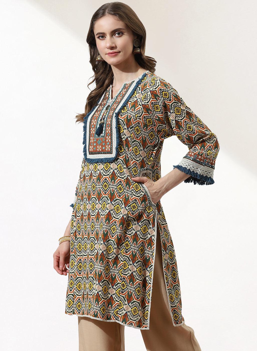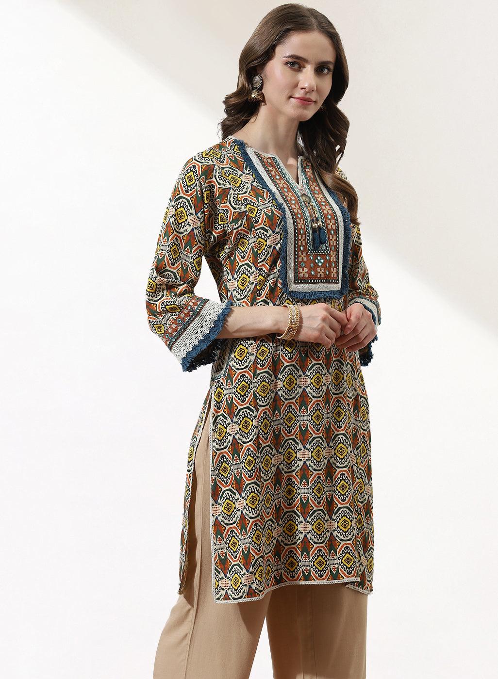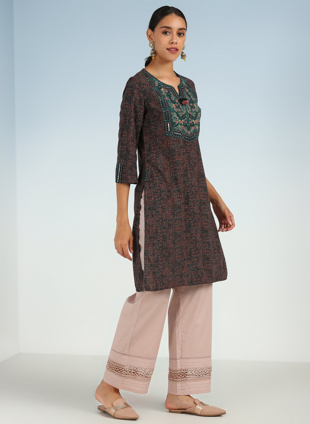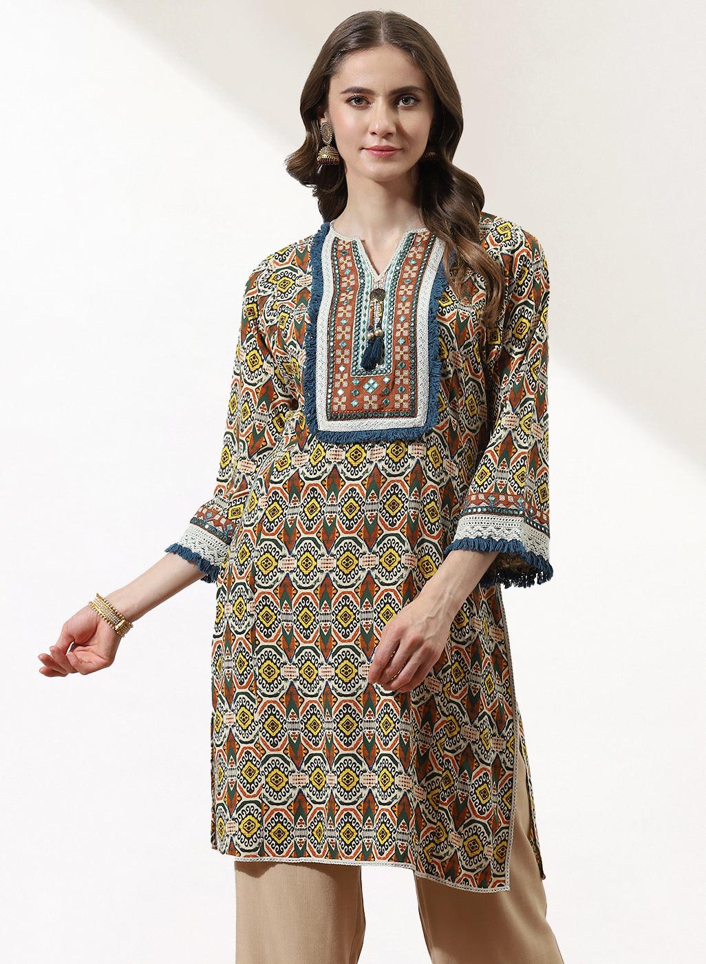 Dark Green Stretchable Kurti for Women with Threadwork and Lace Work
