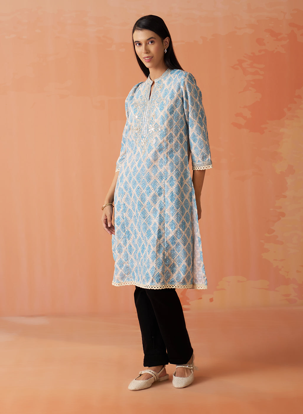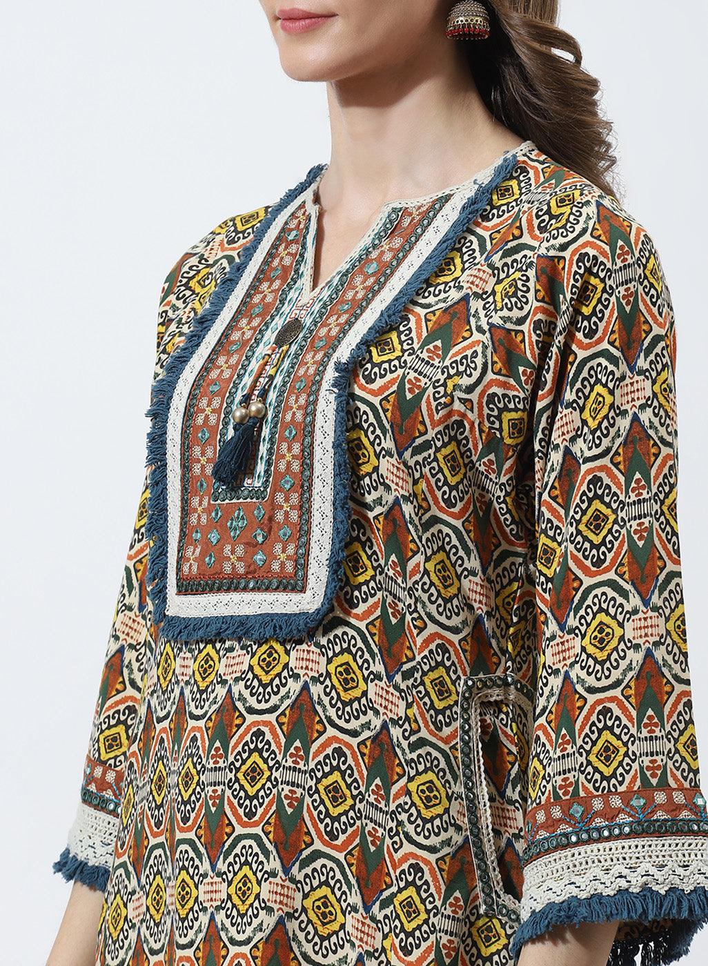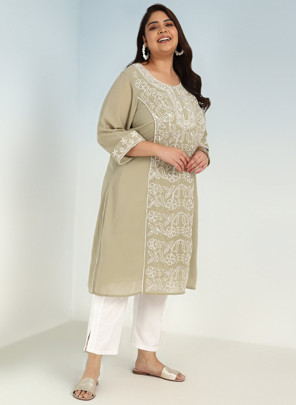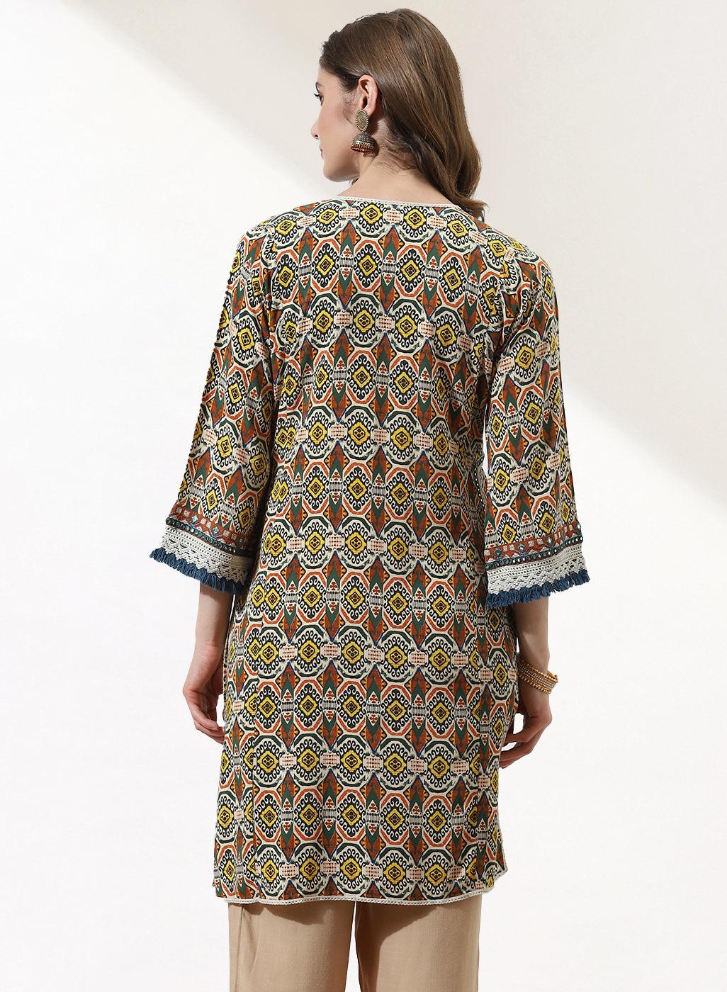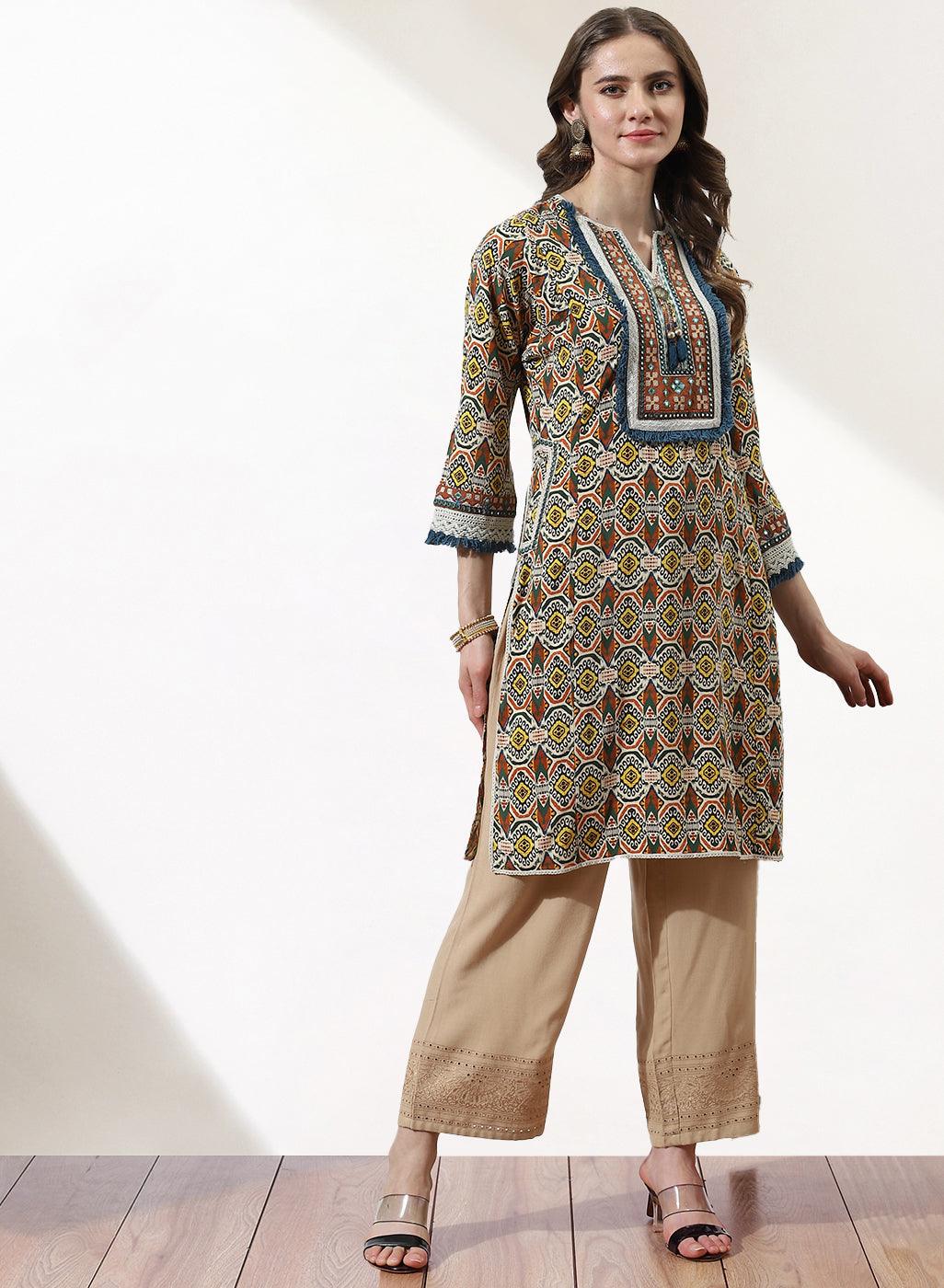 Dark Green Stretchable Kurti for Women with Threadwork and Lace Work