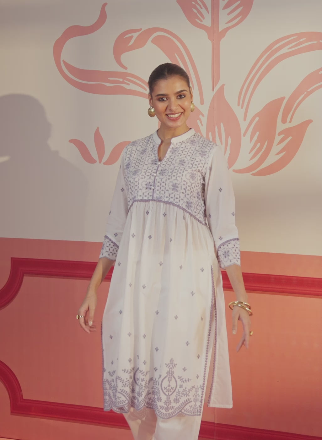 Lavender Embroidered Schiffli Kurta