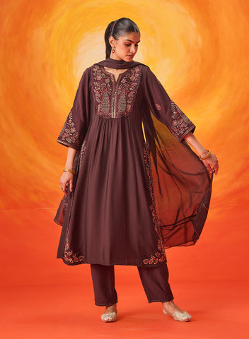 Raunaq Red Zari-Embroidered Suit Set with Dupatta