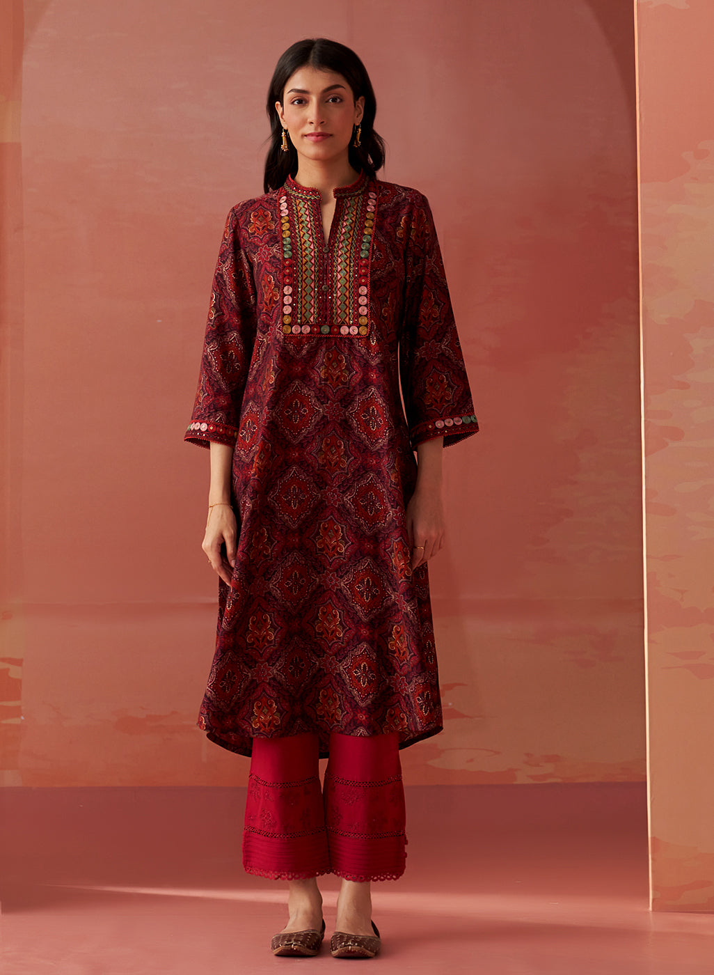 Beige Printed Chanderi Kurta